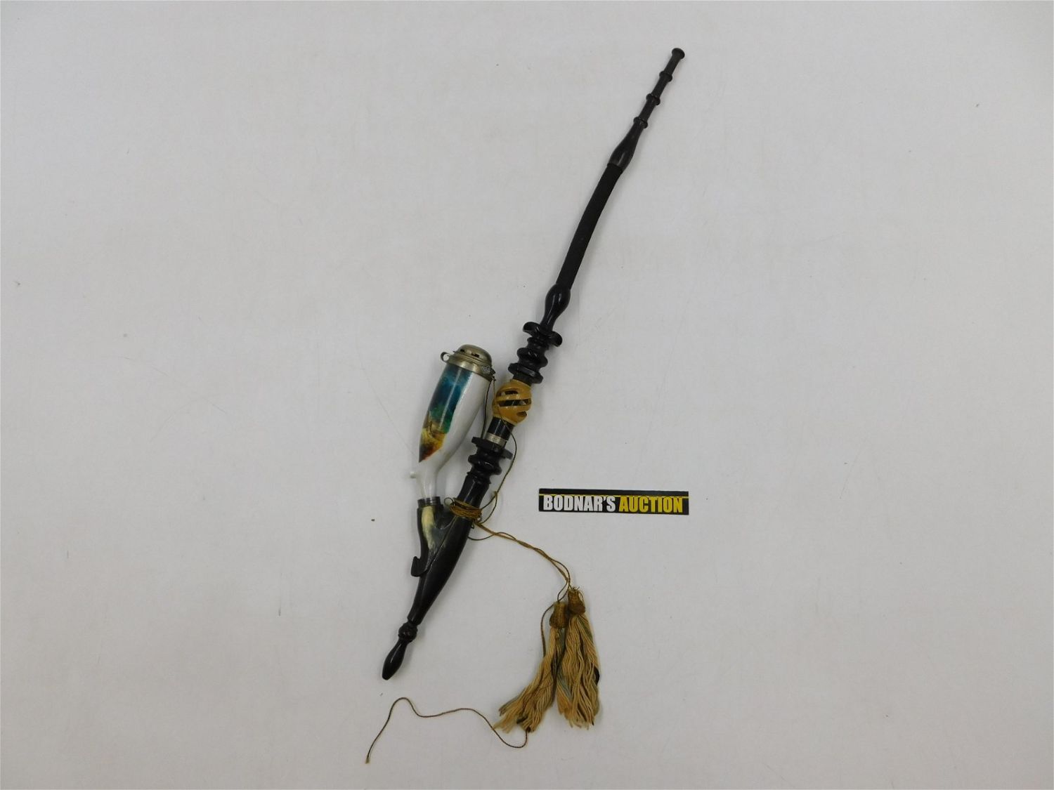 Austrian/German Pipe. Ornately Carved. Stag Horn with Braided Neck and Cover. Measures 20" long. All invoices must be paid within 24 hours of the sale. This auction is Local Pick Up, Shipping with Liveauctioneers Live Ship or with the Local UPS Store in Monmouth Junction, NJ. Local pickups are at our Monmouth Junction location on Friday, Saturday and Monday ONLY! All pickups are by appointment only. Any condition issues will be listed in the description. Please read the terms for full information.