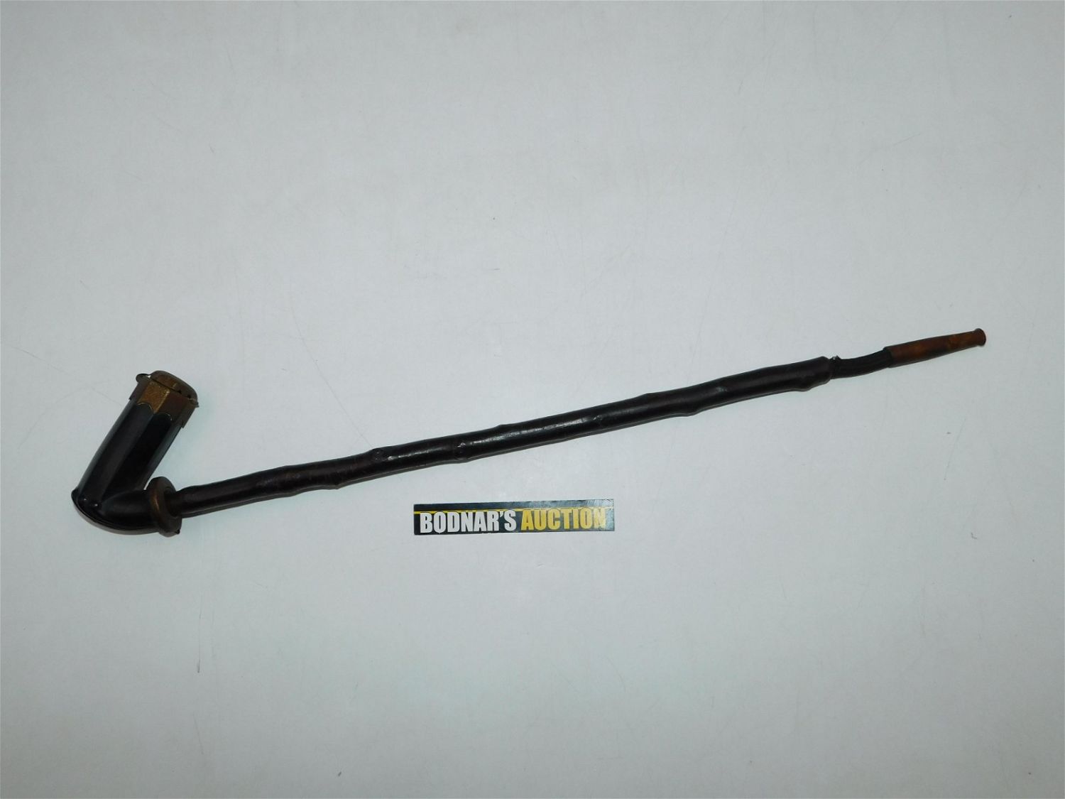 Clay Pipe with Cherry Wood Stem and Lid. Signed and Hallmarked. Measures 19" long. All invoices must be paid within 24 hours of the sale. This auction is Local Pick Up, Shipping with Liveauctioneers Live Ship or with the Local UPS Store in Monmouth Junction, NJ. Local pickups are at our Monmouth Junction location on Friday, Saturday and Monday ONLY! All pickups are by appointment only. Any condition issues will be listed in the description. Please read the terms for full information.
