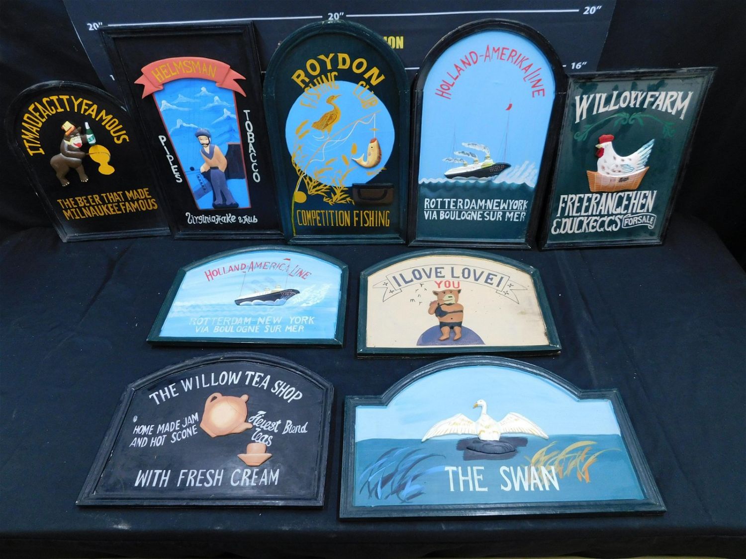 Lot of 9 Wooden Pub Signs. Largest measures 20" tall x 12" wide. All invoices must be paid within 24 hours of the sale. THIS IS A LOCAL PICKUP ONLY AUCTION IN MONMOUTH JUNCTION NJ. Local pickups are at our Monmouth Junction location on Thursday, Friday, Saturday and Monday ONLY! All pickups are by appointment only. Any condition issues will be listed in the description. Please read the terms for full information.