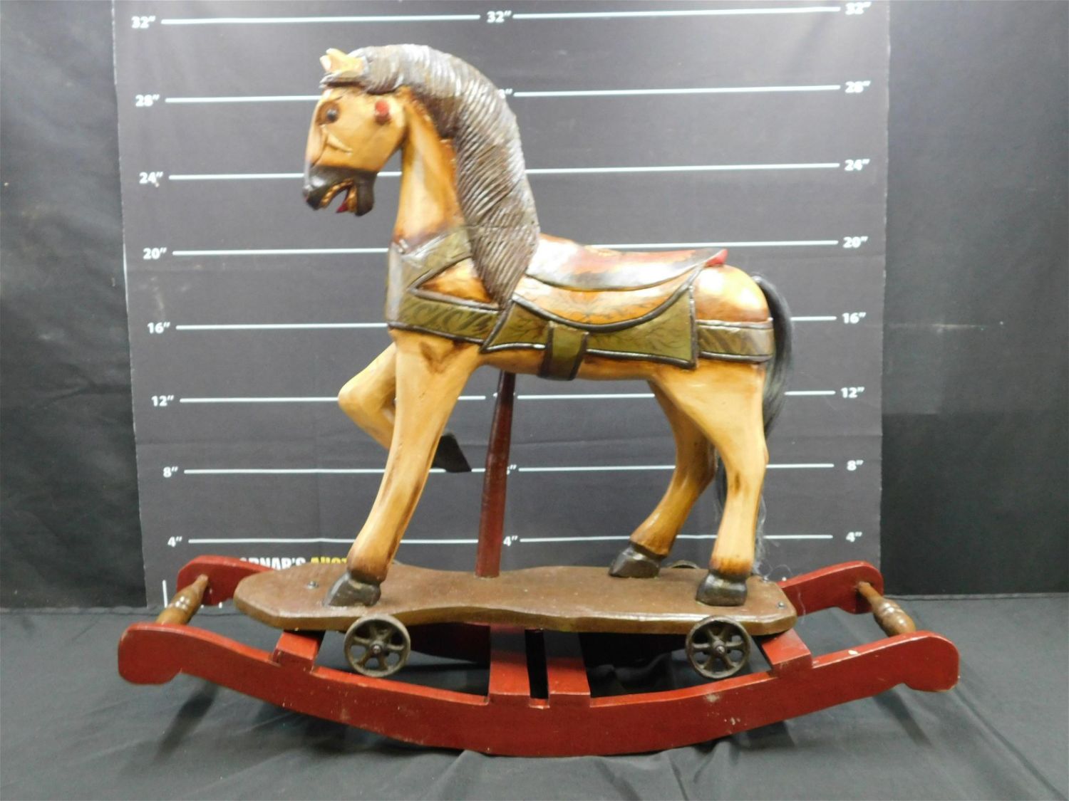Wooden Rocking Horse with Wooden Saddle. Measures 28" tall x 33" long. New in Box. All invoices must be paid within 24 hours of the sale. THIS IS A LOCAL PICKUP ONLY AUCTION IN MONMOUTH JUNCTION NJ. Local pickups are at our Monmouth Junction location on Thursday, Friday, Saturday and Monday ONLY! All pickups are by appointment only. Any condition issues will be listed in the description. Please read the terms for full information.
