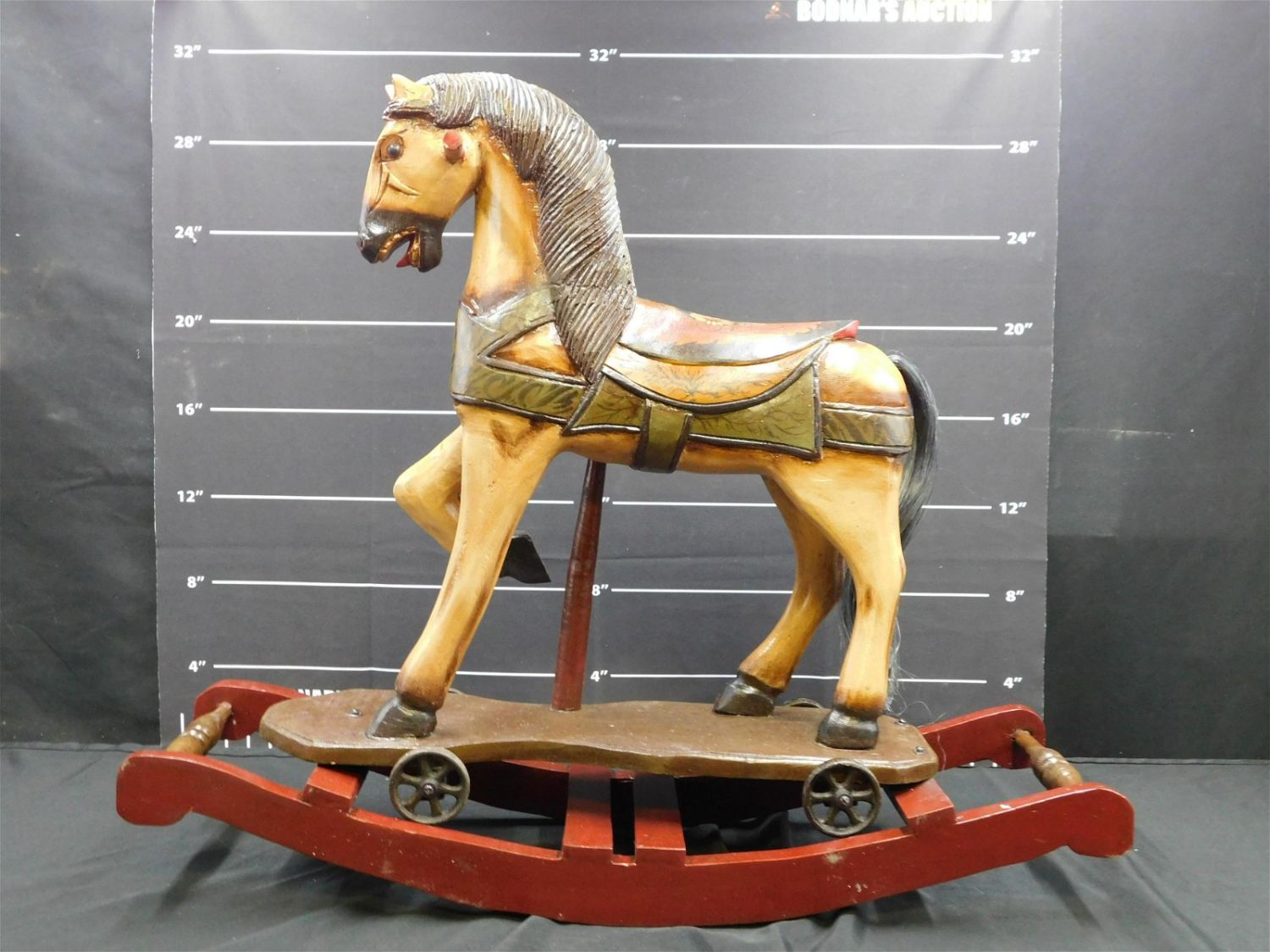 Wooden Rocking Horse with Wooden Saddle. Measures 28" tall x 33" long. New in Box. All invoices must be paid within 24 hours of the sale. THIS IS A LOCAL PICKUP ONLY AUCTION IN MONMOUTH JUNCTION NJ. Local pickups are at our Monmouth Junction location on Thursday, Friday, Saturday and Monday ONLY! All pickups are by appointment only. Any condition issues will be listed in the description. Please read the terms for full information.