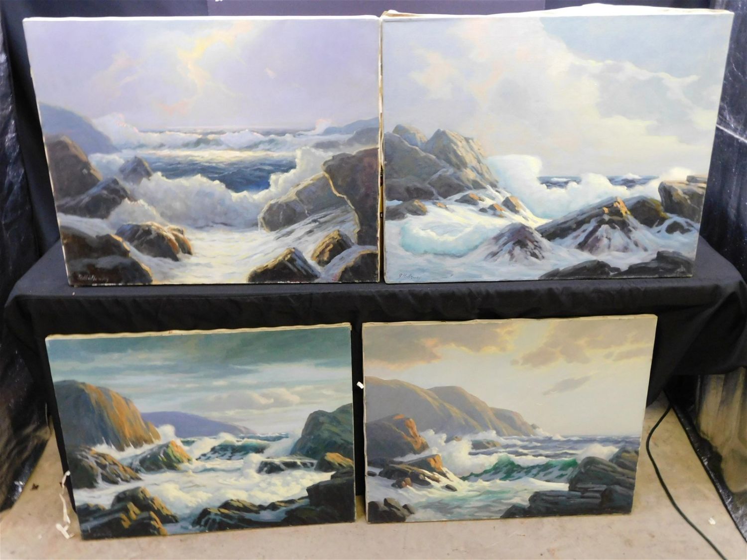 Lot of 4 Oil on Canvas by George Holloway depicting Ocean Scenes – Rockport Massachusetts. Measures 24" tall x 30" wide. George Holloway is a Local Award Winning NJ Artist that has been sold in Galleries. Measures All invoices must be paid within 24 hours of the sale. THIS IS A LOCAL PICKUP ONLY AUCTION IN MONMOUTH JUNCTION NJ. Local pickups are at our Monmouth Junction location on Thursday, Friday, Saturday and Monday ONLY! All pickups are by appointment only. Any condition issues will be listed in the description. Please read the terms for full information.