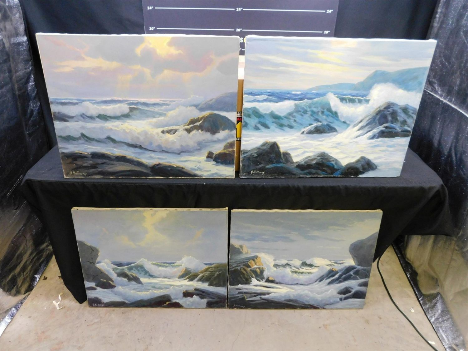 Lot of 4 Oil on Canvas by George Holloway depicting Ocean Scenes – Rockport Massachusetts. Measures 22" tall x 28" wide. George Holloway is a Local Award Winning NJ Artist that has been sold in Galleries. All invoices must be paid within 24 hours of the sale. THIS IS A LOCAL PICKUP ONLY AUCTION IN MONMOUTH JUNCTION NJ. Local pickups are at our Monmouth Junction location on Thursday, Friday, Saturday and Monday ONLY! All pickups are by appointment only. Any condition issues will be listed in the description. Please read the terms for full information.