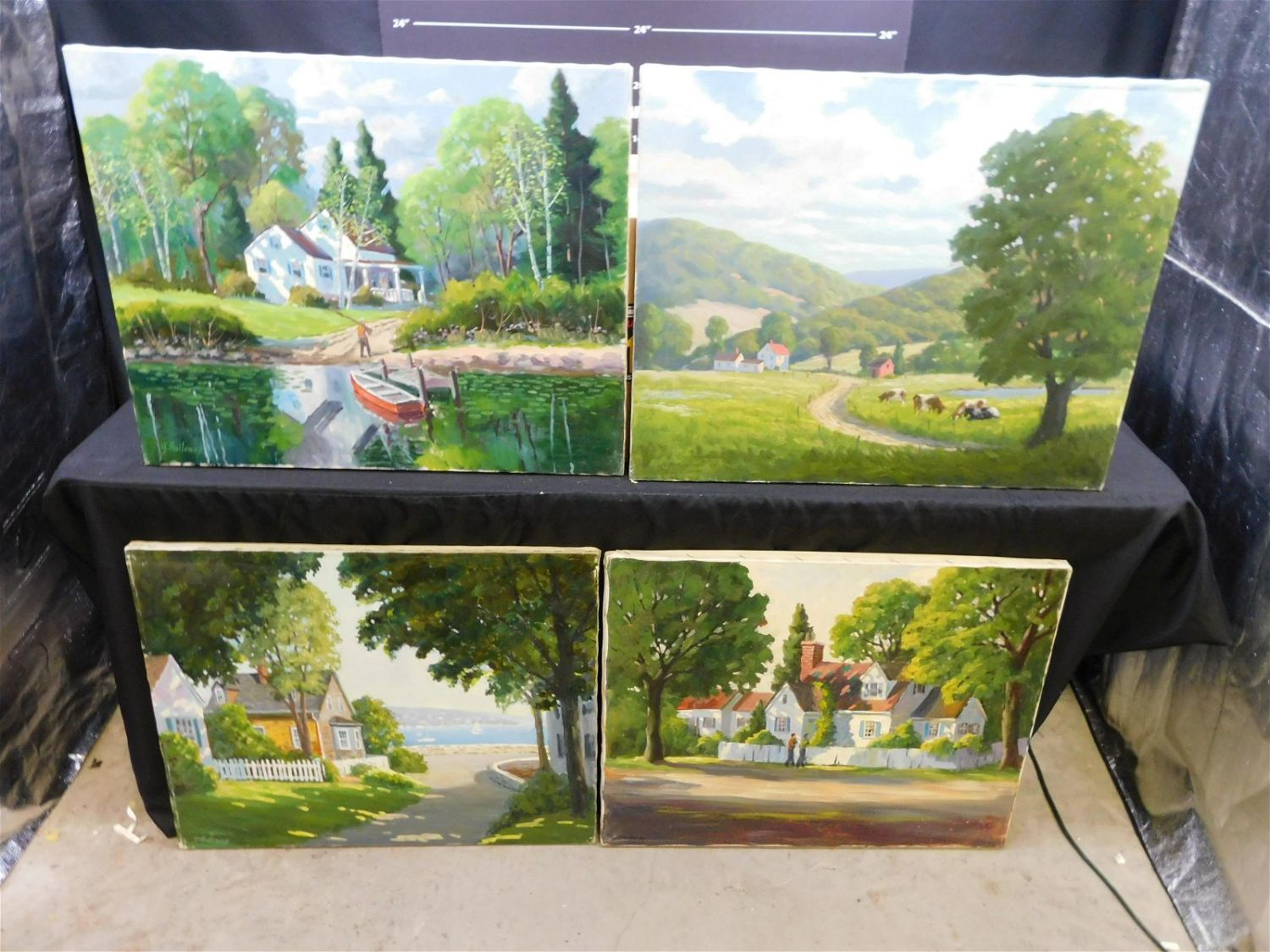 Lot of 4 Oil on Canvas by George Holloway depicting Summer/Fall Scenes. Measures 24" tall x 30" wide. George Holloway is a Local Award Winning NJ Artist that has been sold in Galleries. All invoices must be paid within 24 hours of the sale. THIS IS A LOCAL PICKUP ONLY AUCTION IN MONMOUTH JUNCTION NJ. Local pickups are at our Monmouth Junction location on Thursday, Friday, Saturday and Monday ONLY! All pickups are by appointment only. Any condition issues will be listed in the description. Please read the terms for full information.