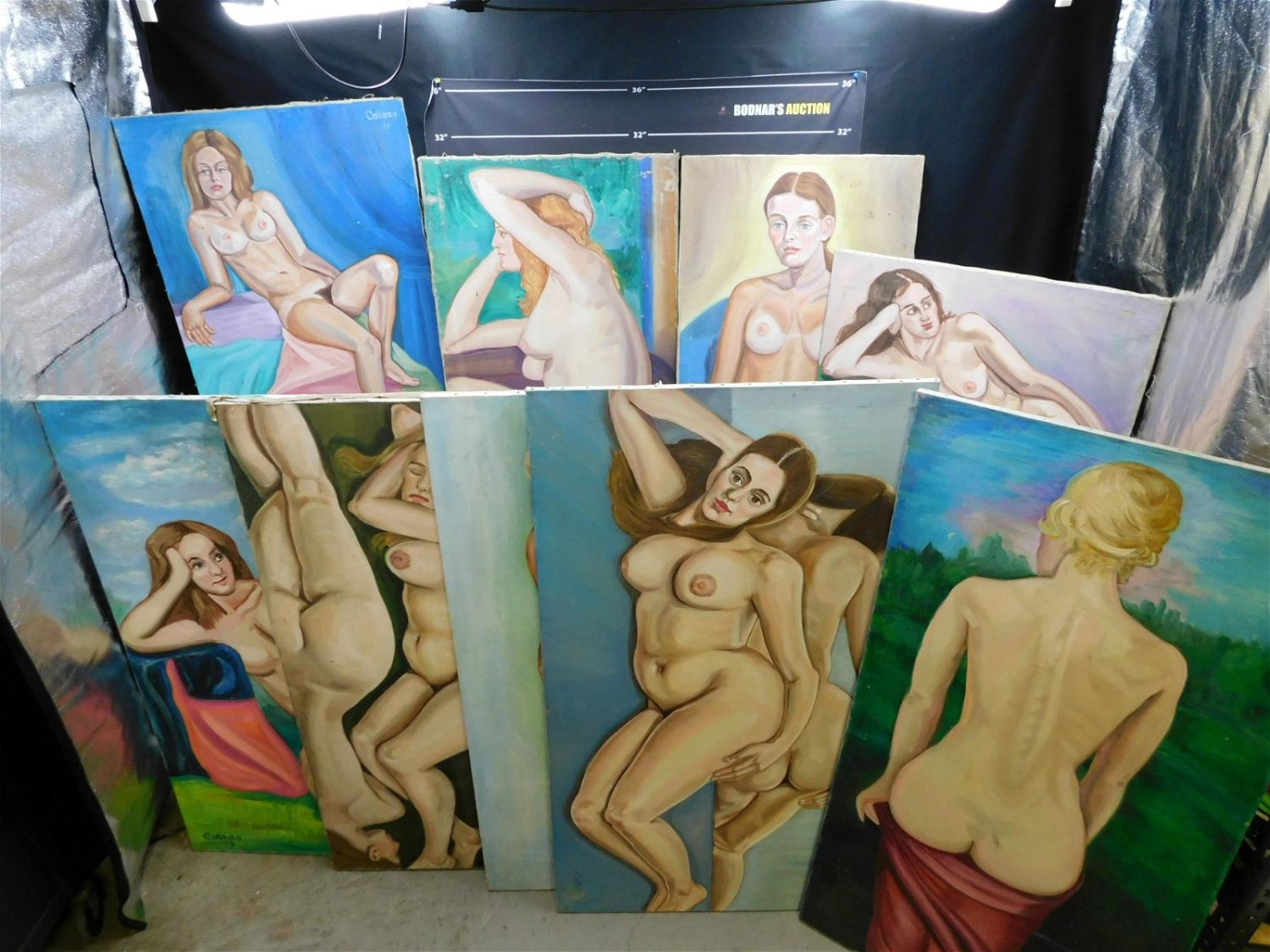 Lot of 10 Oil on Canvas of Nude Portraits by New Jersey Local Artist – Corrao. Various Sizes. One is AS-IS. Largest measures 50" x 28". All invoices must be paid within 24 hours of the sale. THIS IS A LOCAL PICKUP ONLY AUCTION IN MONMOUTH JUNCTION NJ. Local pickups are at our Monmouth Junction location on Thursday, Friday, Saturday and Monday ONLY! All pickups are by appointment only. Any condition issues will be listed in the description. Please read the terms for full information.