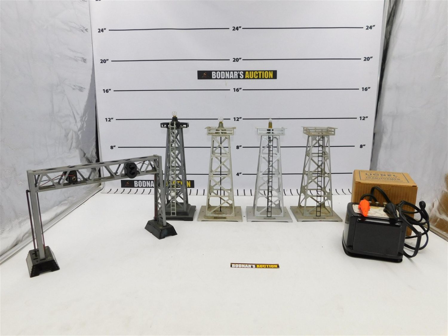 Lot of O Gauge Train Accessories including Lionel Multi Controlled Transformer 1033 in Original Box, 3 Lionel Beacon Towers, Marx Beacon Tower and Signal Bridge. All invoices must be paid within 24 hours of the sale. No trains have been tested to be working. All lots ship Liveauctioneers Live Ship, to get a quote see the truck icon on this listing. You can Opt out of Live Shipping and use the Local UPS Store or arrange your own shipping . Local pickups are at our Monmouth Junction location on Friday, Saturday and Monday ONLY! All pickups are by appointment only. Any condition issues will be listed in the description. Please read the terms for full information.