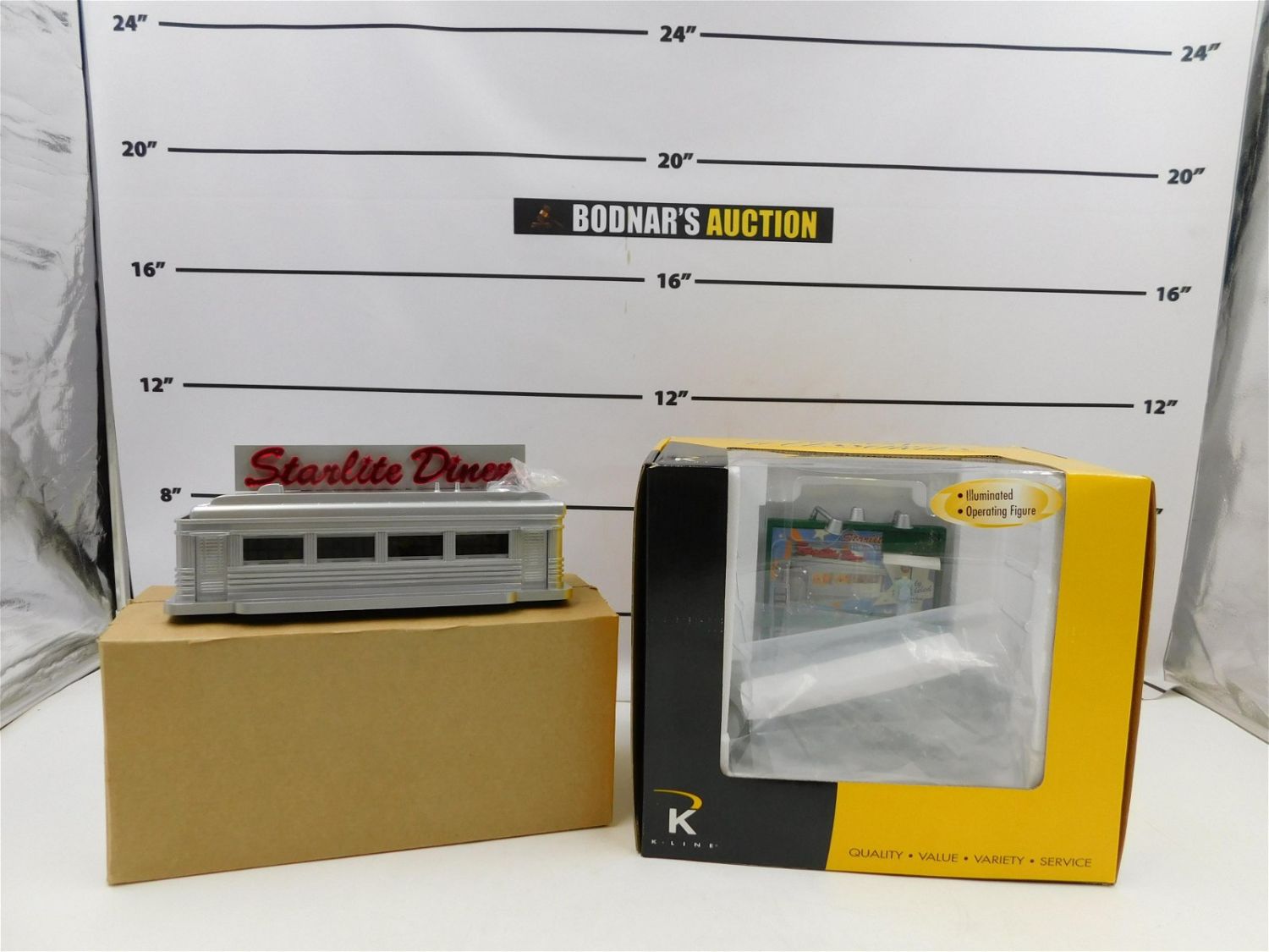 K-Line Starlight Billboard and Starlight Diner Accessory Set. Both come in original boxes. All invoices must be paid within 24 hours of the sale. No trains have been tested to be working. All lots ship Liveauctioneers Live Ship, to get a quote see the truck icon on this listing. You can Opt out of Live Shipping and use the Local UPS Store or arrange your own shipping . Local pickups are at our Monmouth Junction location on Friday, Saturday and Monday ONLY! All pickups are by appointment only. Any condition issues will be listed in the description. Please read the terms for full information.