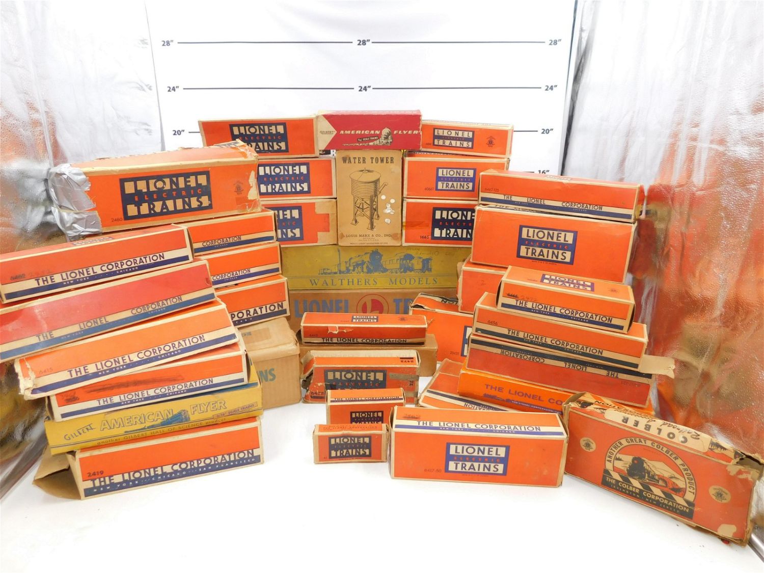Large Lot of Lionel and American Flyer Empty Boxes. Many have wear and damage. Please see photos for boxes included. All invoices must be paid within 24 hours of the sale. No trains have been tested to be working. All lots ship Liveauctioneers Live Ship, to get a quote see the truck icon on this listing. You can Opt out of Live Shipping and use the Local UPS Store or arrange your own shipping . Local pickups are at our Monmouth Junction location on Friday, Saturday and Monday ONLY! All pickups are by appointment only. Any condition issues will be listed in the description. Please read the terms for full information.