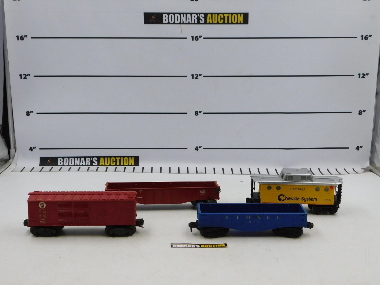 Lot of 4 O Gauge Lionel Stock including Gondola Car #1002, C&O Caboose #9167, NYC Gondola #6462, and Penn RR Box Car #x6014. All invoices must be paid within 24 hours of the sale. No trains have been tested to be working. All lots ship Liveauctioneers Live Ship, to get a quote see the truck icon on this listing. You can Opt out of Live Shipping and use the Local UPS Store or arrange your own shipping . Local pickups are at our Monmouth Junction location on Friday, Saturday and Monday ONLY! All pickups are by appointment only. Any condition issues will be listed in the description. Please read the terms for full information.