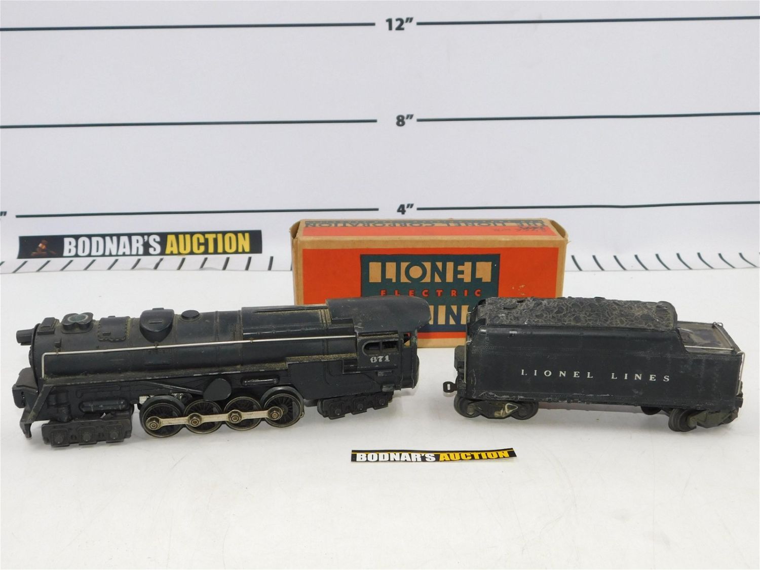 Lionel O Gauge Post War Steam Locomotive #671 with Tender #2466W. The tender comes with incorrect box. All invoices must be paid within 24 hours of the sale. No trains have been tested to be working. All lots ship Liveauctioneers Live Ship, to get a quote see the truck icon on this listing. You can Opt out of Live Shipping and use the Local UPS Store or arrange your own shipping . Local pickups are at our Monmouth Junction location on Friday, Saturday and Monday ONLY! All pickups are by appointment only. Any condition issues will be listed in the description. Please read the terms for full information.