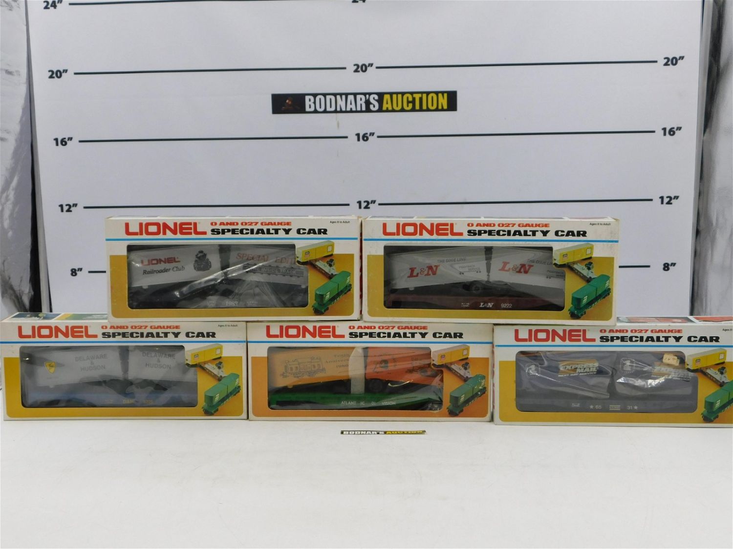 Lot of 5 Lionel O Gauge Rolling Stock including Flatcar #9222, Railroader Club Flatcar #0781, Express Mail Flatcar #6531, Southern Pacific Flatcar #9333, and Delaware & Hudson Flatcar #9226. All come in original boxes. All invoices must be paid within 24 hours of the sale. No trains have been tested to be working. All lots ship Liveauctioneers Live Ship, to get a quote see the truck icon on this listing. You can Opt out of Live Shipping and use the Local UPS Store or arrange your own shipping . Local pickups are at our Monmouth Junction location on Friday, Saturday and Monday ONLY! All pickups are by appointment only. Any condition issues will be listed in the description. Please read the terms for full information.