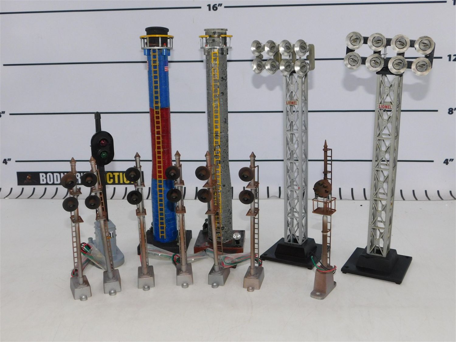 Lot Train Accessories including Lionel Floodlights 195, Operating Signal Towers, and Lionel Operating Smoke Stack. Please read the terms and conditions. This sale will be broadcast live on sale day with full descriptions of each lot being sold. All items MUST be paid for within 24 HOURS of the sale. All lots ship Liveauctioneers Live Ship, to get a quote see the truck icon on this listing. You can Opt out of Live Shipping and use the Local UPS Store or arrange your own shipping . If you are picking your items up you must contact us NO LATER than 24 hours after the sale to schedule an appointment to pick up. Pick up dates are Thursday, Friday, Saturday, and Monday ONLY, and are BY APPOINTMENT ONLY!! No trains have been tested to be working. Any condition issues will be listed in the description. Please read the terms for full information.