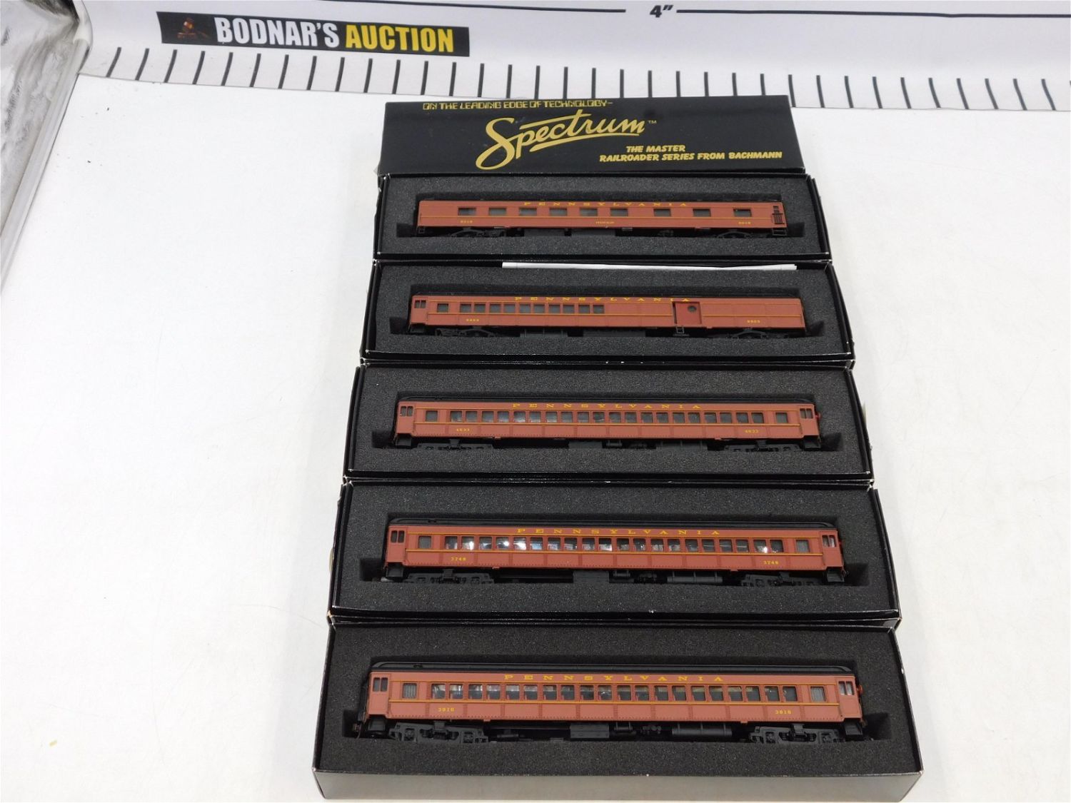 Bachmann Spectrum HO Scale Postwar PRR Passenger Car Set. Including 3 Coaches, Diner, and Combine. All come in original box. Please read the terms and conditions. This sale will be broadcast live on sale day with full descriptions of each lot being sold. All items MUST be paid for within 24 HOURS of the sale. All lots ship Liveauctioneers Live Ship, to get a quote see the truck icon on this listing. You can Opt out of Live Shipping and use the Local UPS Store or arrange your own shipping . If you are picking your items up you must contact us NO LATER than 24 hours after the sale to schedule an appointment to pick up. Pick up dates are Thursday, Friday, Saturday, and Monday ONLY, and are BY APPOINTMENT ONLY!! No trains have been tested to be working. Any condition issues will be listed in the description. Please read the terms for full information.