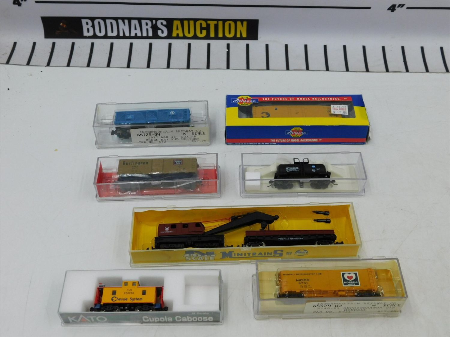 Lot of N Scale Trains including Atlas, Artheam, AHM, Kato Caboose 186-0303, Micro Train Line and More. All come in original packaging. Please read the terms and conditions. This sale will be broadcast live on sale day with full descriptions of each lot being sold. All items MUST be paid for within 24 HOURS of the sale. All lots ship Liveauctioneers Live Ship, to get a quote see the truck icon on this listing. You can Opt out of Live Shipping and use the Local UPS Store or arrange your own shipping . If you are picking your items up you must contact us NO LATER than 24 hours after the sale to schedule an appointment to pick up. Pick up dates are Thursday, Friday, Saturday, and Monday ONLY, and are BY APPOINTMENT ONLY!! No trains have been tested to be working. Any condition issues will be listed in the description. Please read the terms for full information.