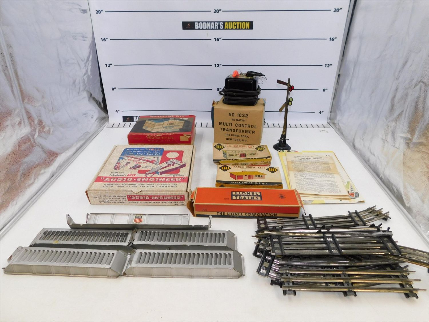 Lot of Train Accessories and Track including Plasticville Model Kits, Lionel Multi Control Transformer 1032 in original box, Tubular Track, and Lionel O Gauge Remote Control Track Set in Original Box. Please read the terms and conditions. This sale will be broadcast live on sale day with full descriptions of each lot being sold. All items MUST be paid for within 24 HOURS of the sale. All lots ship Liveauctioneers Live Ship, to get a quote see the truck icon on this listing. You can Opt out of Live Shipping and use the Local UPS Store or arrange your own shipping . If you are picking your items up you must contact us NO LATER than 24 hours after the sale to schedule an appointment to pick up. Pick up dates are Thursday, Friday, Saturday, and Monday ONLY, and are BY APPOINTMENT ONLY!! No trains have been tested to be working. Any condition issues will be listed in the description. Please read the terms for full information.