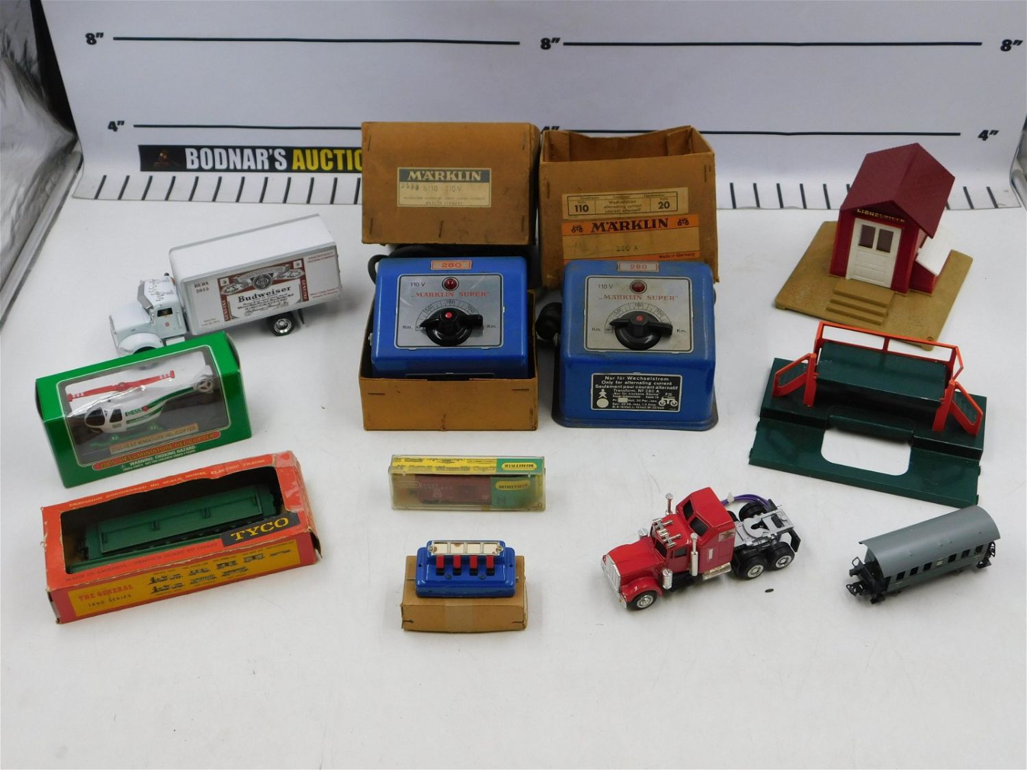 Lot of Train Items including Lionel LTI Whistling Shed, (2) Marklin 110 Volt Transformers 280, Lionel Milk Car Platform 3462P, and More. Please read the terms and conditions. This sale will be broadcast live on sale day with full descriptions of each lot being sold. All items MUST be paid for within 24 HOURS of the sale. All lots ship Liveauctioneers Live Ship, to get a quote see the truck icon on this listing. You can Opt out of Live Shipping and use the Local UPS Store or arrange your own shipping . If you are picking your items up you must contact us NO LATER than 24 hours after the sale to schedule an appointment to pick up. Pick up dates are Thursday, Friday, Saturday, and Monday ONLY, and are BY APPOINTMENT ONLY!! No trains have been tested to be working. Any condition issues will be listed in the description. Please read the terms for full information.