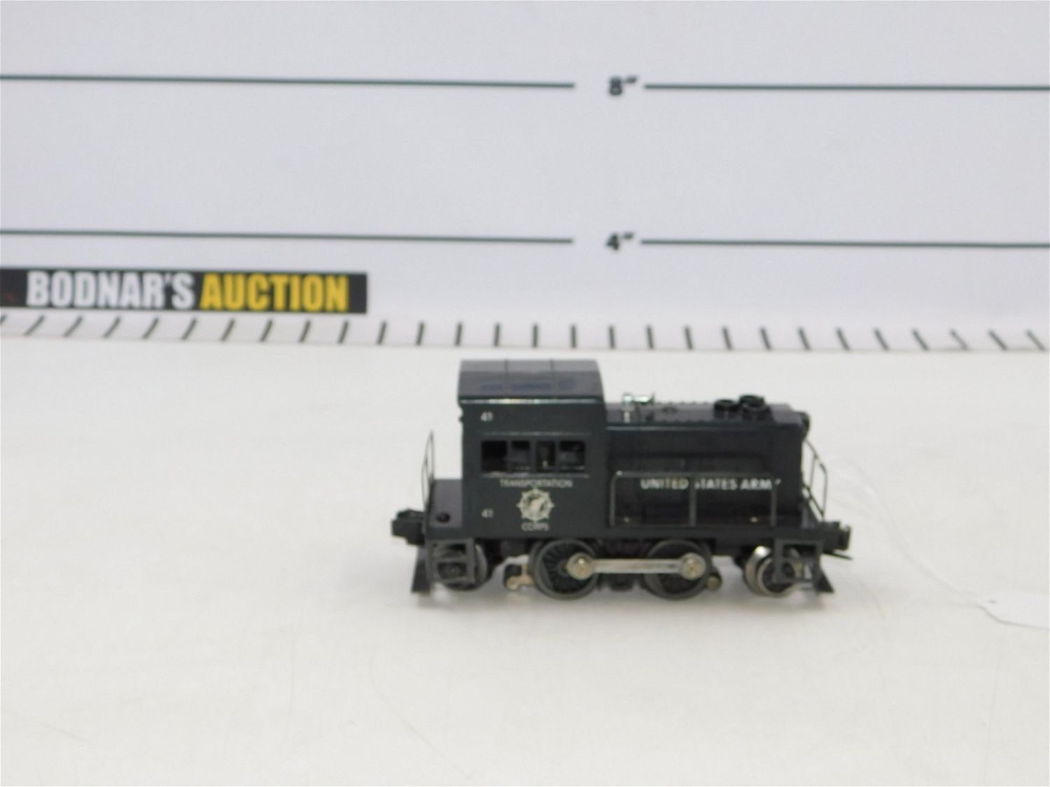 Lionel O Gauge Postwar US Army Switcher #41. Struts intact. Please read the terms and conditions. This sale will be broadcast live on sale day with full descriptions of each lot being sold. All items MUST be paid for within 24 HOURS of the sale. All lots ship Liveauctioneers Live Ship, to get a quote see the truck icon on this listing. You can Opt out of Live Shipping and use the Local UPS Store or arrange your own shipping . If you are picking your items up you must contact us NO LATER than 24 hours after the sale to schedule an appointment to pick up. Pick up dates are Thursday, Friday, Saturday, and Monday ONLY, and are BY APPOINTMENT ONLY!! No trains have been tested to be working. Any condition issues will be listed in the description. Please read the terms for full information.