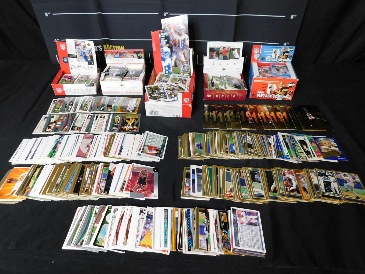 Large Lot of Sports Cards including 2001 Upper Deck Golf, 2002 Upper Deck Baseball, 2001 Vintage Football, 2001 Victory Football, 2001 UD Top Tier Football, and other mixed brands. All invoices must be paid within 24 hours of the sale. All items are shipped USPS or UPS and will be billed separately. A $12 handling fee is added to the shipping price per lot if shipped in house. Some items or large quantity of purchases will be packed and shipped via the Monmouth Junction UPS store. Local pickups are at our Monmouth Junction location on Friday, Saturday and Monday ONLY! All pickups are by appointment only. Any condition issues will be listed in the description. Please read the terms for full information.