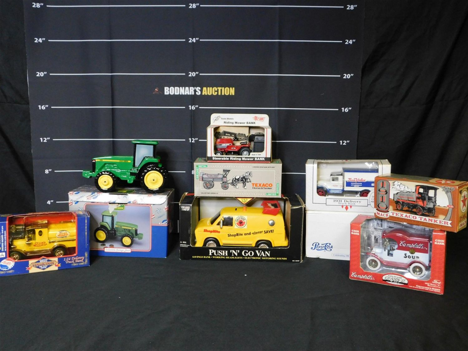 Lot of Die-Cast Banks. Including Shop-Rite, John Deere, Texaco, Campbell’s and More. All invoices must be paid within 24 hours of the sale. All items are shipped USPS or UPS and will be billed separately. A $12 handling fee is added to the shipping price per lot if shipped in house. Some items or large quantity of purchases will be packed and shipped via the Monmouth Junction UPS store. Local pickups are at our Monmouth Junction location on Friday, Saturday and Monday ONLY! All pickups are by appointment only. Any condition issues will be listed in the description. Please read the terms for full information.