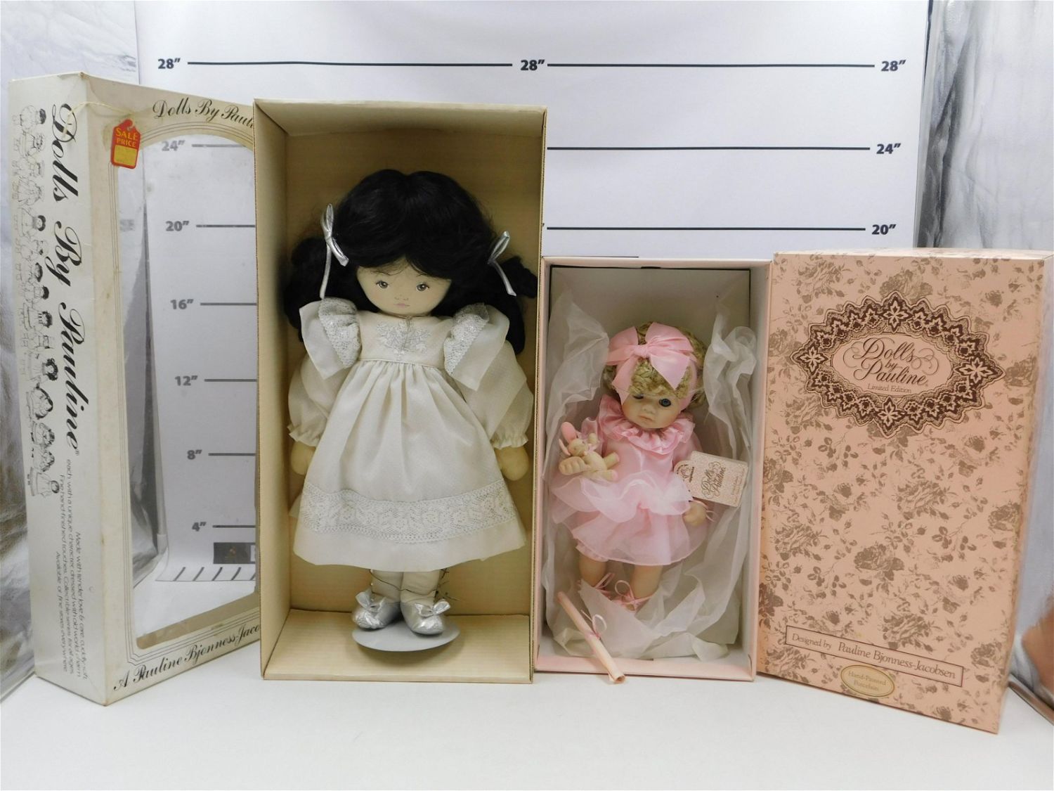 Lot of 2 Dolls by Pauline Bjonness-Jacobsen including Limited Edition Porcelain Ballerina measuring 13" long in Box and Cloth Doll measuring 19" in Box. All invoices must be paid within 24 hours of the sale. All items are shipped USPS or UPS and will be billed separately. A $12 handling fee is added to the shipping price per lot if shipped in house. Some items or large quantity of purchases will be packed and shipped via the Monmouth Junction UPS store. Local pickups are at our Monmouth Junction location on Friday, Saturday and Monday ONLY! All pickups are by appointment only. Any condition issues will be listed in the description. Please read the terms for full information.
