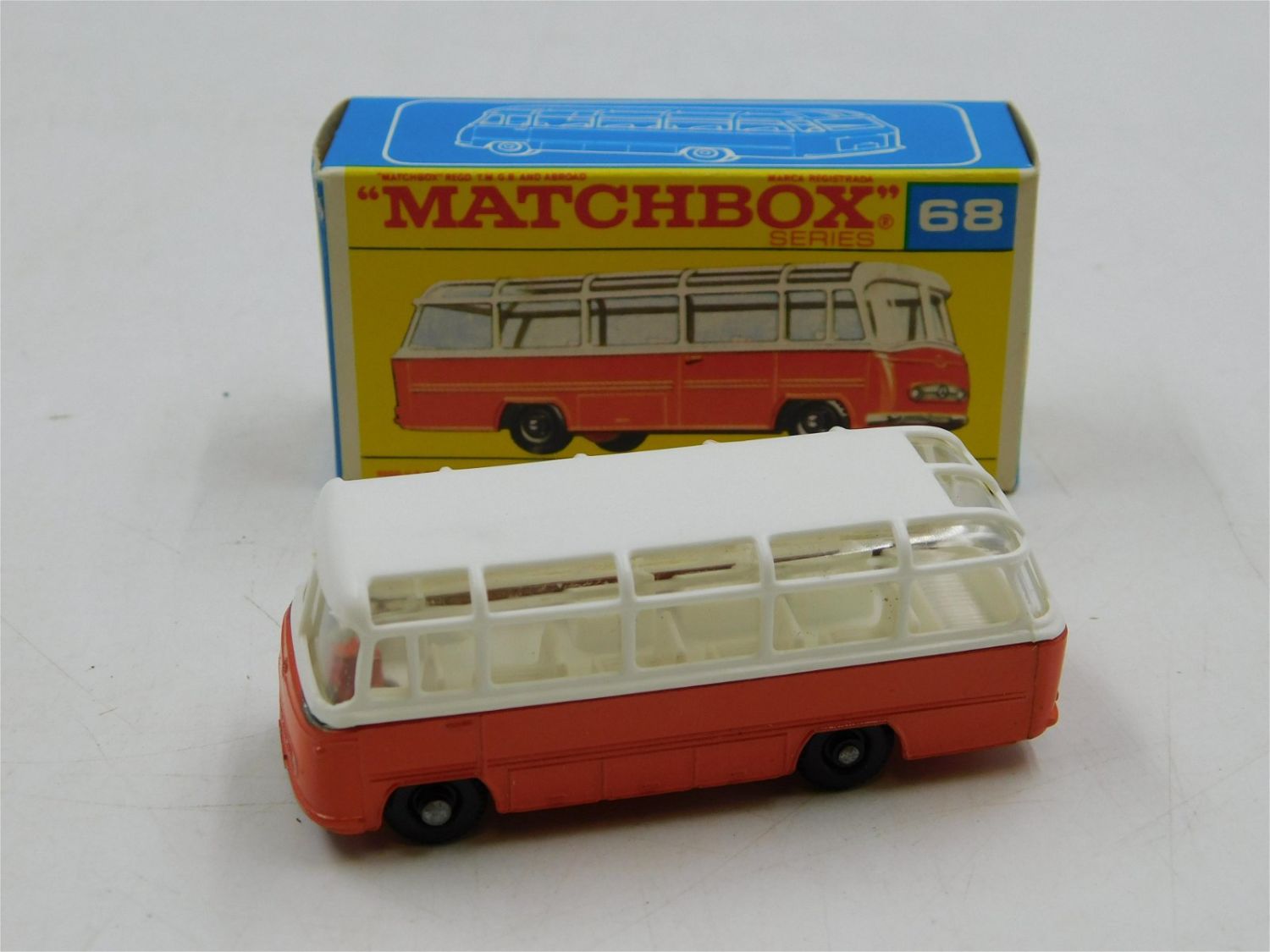Matchbox Lesney Mercedes Coach #68. Comes in Original Box. All invoices must be paid within 24 hours of the sale. All items are shipped USPS or UPS and will be billed separately. A $12 handling fee is added to the shipping price per lot if shipped in house. Some items or large quantity of purchases will be packed and shipped via the Monmouth Junction UPS store. Local pickups are at our Monmouth Junction location on Friday, Saturday and Monday ONLY! All pickups are by appointment only. Any condition issues will be listed in the description. Please read the terms for full information.