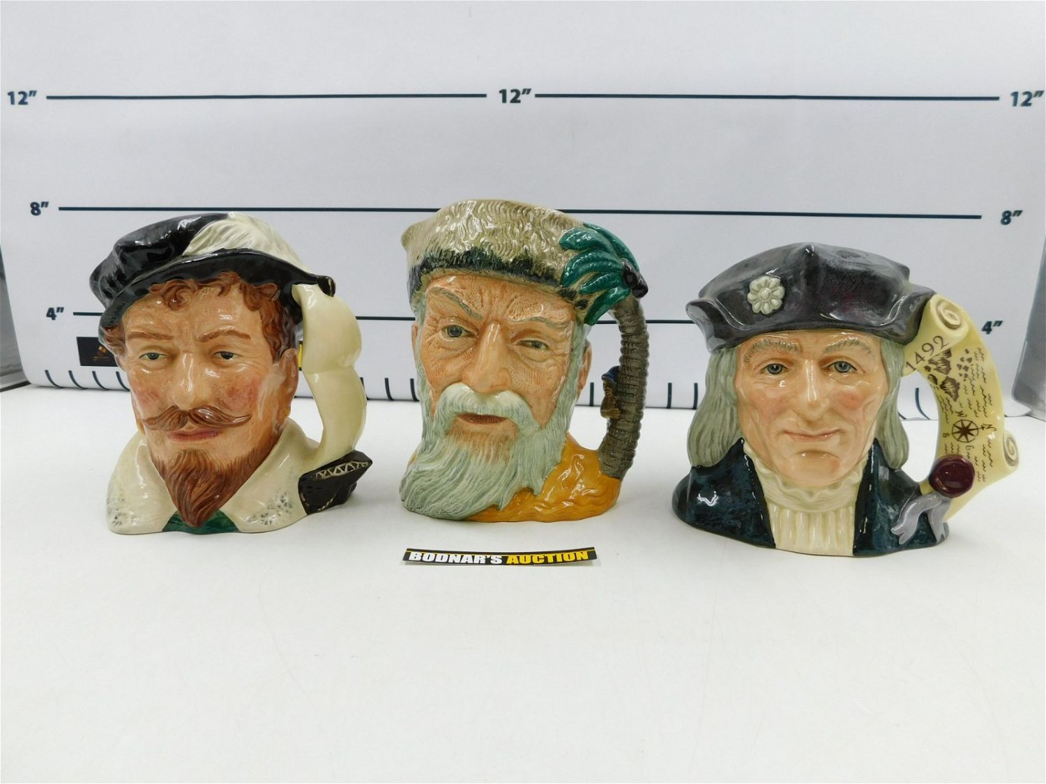 Lot of 3 Royal Doulton Character/Toby Jugs. Included in this lot are Christopher Columbus – D6891 dated 1991 measuring 7" x 8.5", Sir Francis Drake – D6805 dated 1988 Special Edition of 6000 measuring 7.5" x 7.25" – Some glaze loss and Robinson Crusoe – D6532 dated 1959 measuring 7.75" x 6.5". All invoices must be paid within 24 hours of the sale. If you need your items shipped, we are using Liveauctioneers Live Ship. They will pack it and ship it to you and it will be on your invoice at check out. You can also use your own shiper. Local pickups are at our Monmouth Junction location on Friday, Saturday and Monday ONLY! All pickups are by appointment only. Any condition issues will be listed in the description. Please read the terms for full information.