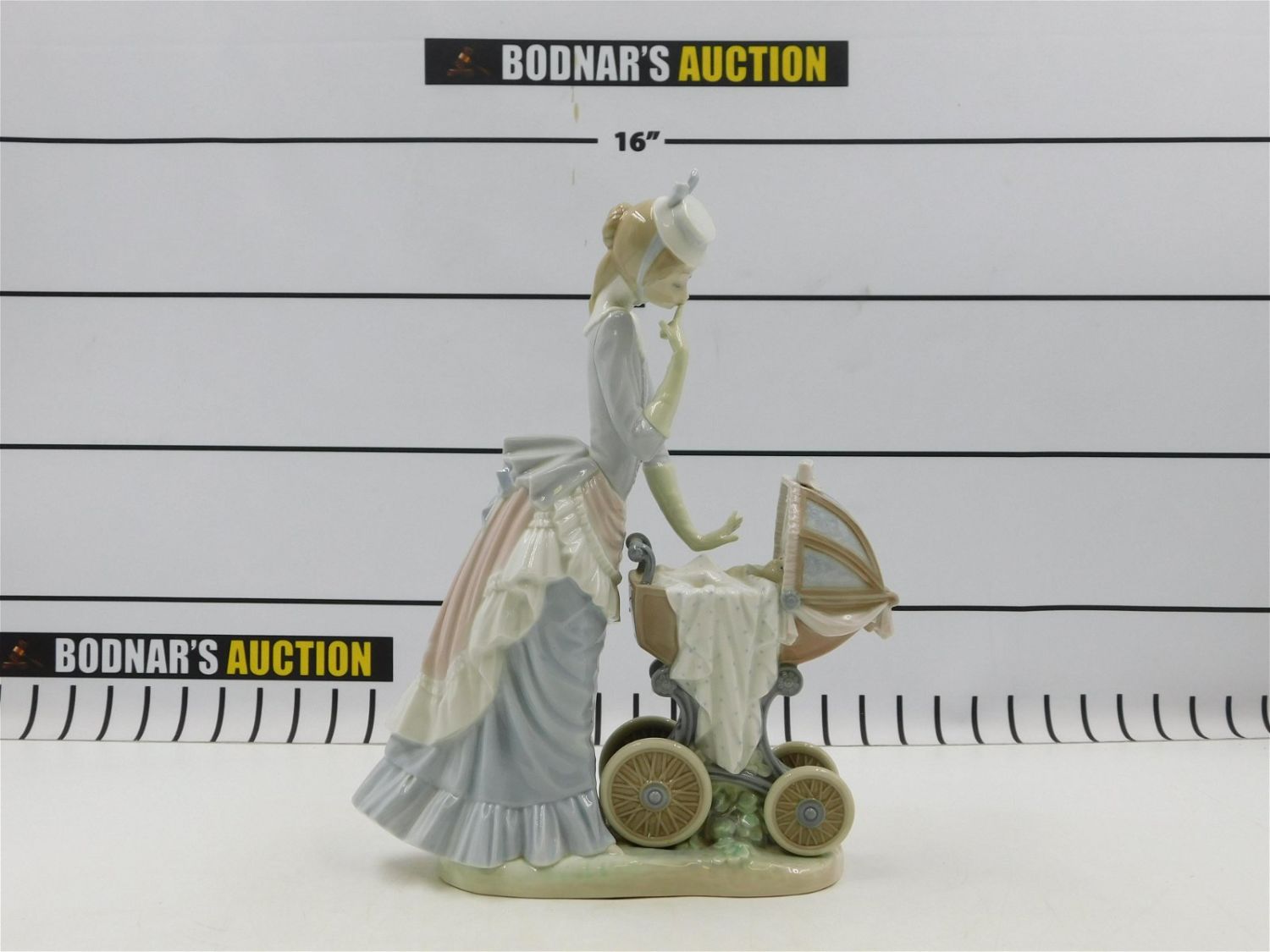Lladro "Baby’s Outing" Porcelain Figurine. Measures 13" tall x 10" wide. All invoices must be paid within 24 hours of the sale. If you need your items shipped, we are using Liveauctioneers Live Ship. They will pack it and ship it to you and it will be on your invoice at check out. You can also use your own shiper. Local pickups are at our Monmouth Junction location on Friday, Saturday and Monday ONLY! All pickups are by appointment only. Any condition issues will be listed in the description. Please read the terms for full information.