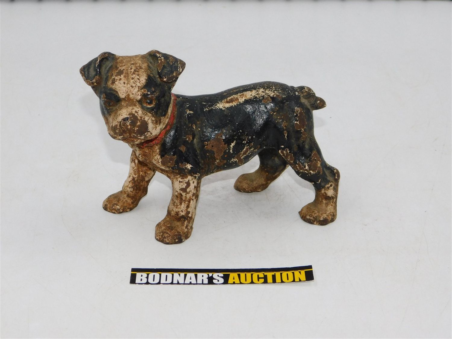 Vintage Cast Iron Cold Painted Dog Doorstop. Original Paint does have loss. Measures 5" tall x 6.5" long x 3" deep. All invoices must be paid within 24 hours of the sale. If you need your items shipped, we are using Liveauctioneers Live Ship. They will pack it and ship it to you and it will be on your invoice at check out. You can also use your own shiper. Local pickups are at our Monmouth Junction location on Friday, Saturday and Monday ONLY! All pickups are by appointment only. Any condition issues will be listed in the description. Please read the terms for full information.