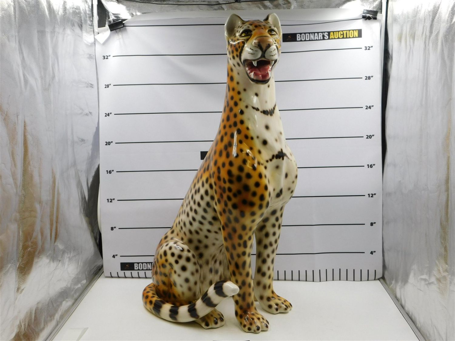 Ceramic Hand Painted Lifesize Cheetah Figurine. Measures 35" tall x 22" wide x 12" deep. All invoices must be paid within 24 hours of the sale. If you need your items shipped, we are using Liveauctioneers Live Ship. They will pack it and ship it to you and it will be on your invoice at check out. You can also use your own shiper. Local pickups are at our Monmouth Junction location on Friday, Saturday and Monday ONLY! All pickups are by appointment only. Any condition issues will be listed in the description. Please read the terms for full information.