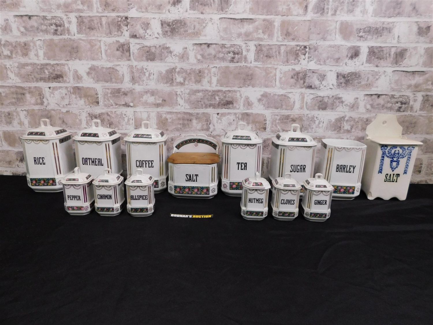 Spice and Condiment Canister Lot. Some have chip and one is missing lid. Please read the terms and conditions. This sale will be broadcast live on sale day with full descriptions of each lot being sold. All items MUST be paid for within 24 HOURS of the sale. Anyone who has not paid within 24 hours will have a dispute opened against them and will not be able to bid at future sales. If you need your items shipped, we wwe are using Liveauctioneers Live Ship. They will pack it and ship it to you and it will be on your invoice at check out. They will pack it and ship it to you and you will pay them separately and directly. You can also use your own shiper. If you are picking your items up you must contact us NO LATER than 24 hours after the sale to schedule an appointment to pick up. Pick up dates are Thursday, Friday, Saturday, and Monday ONLY, and are BY APPOINTMENT ONLY!! After Monday, if you have not picked up your items, they will be disposed of.