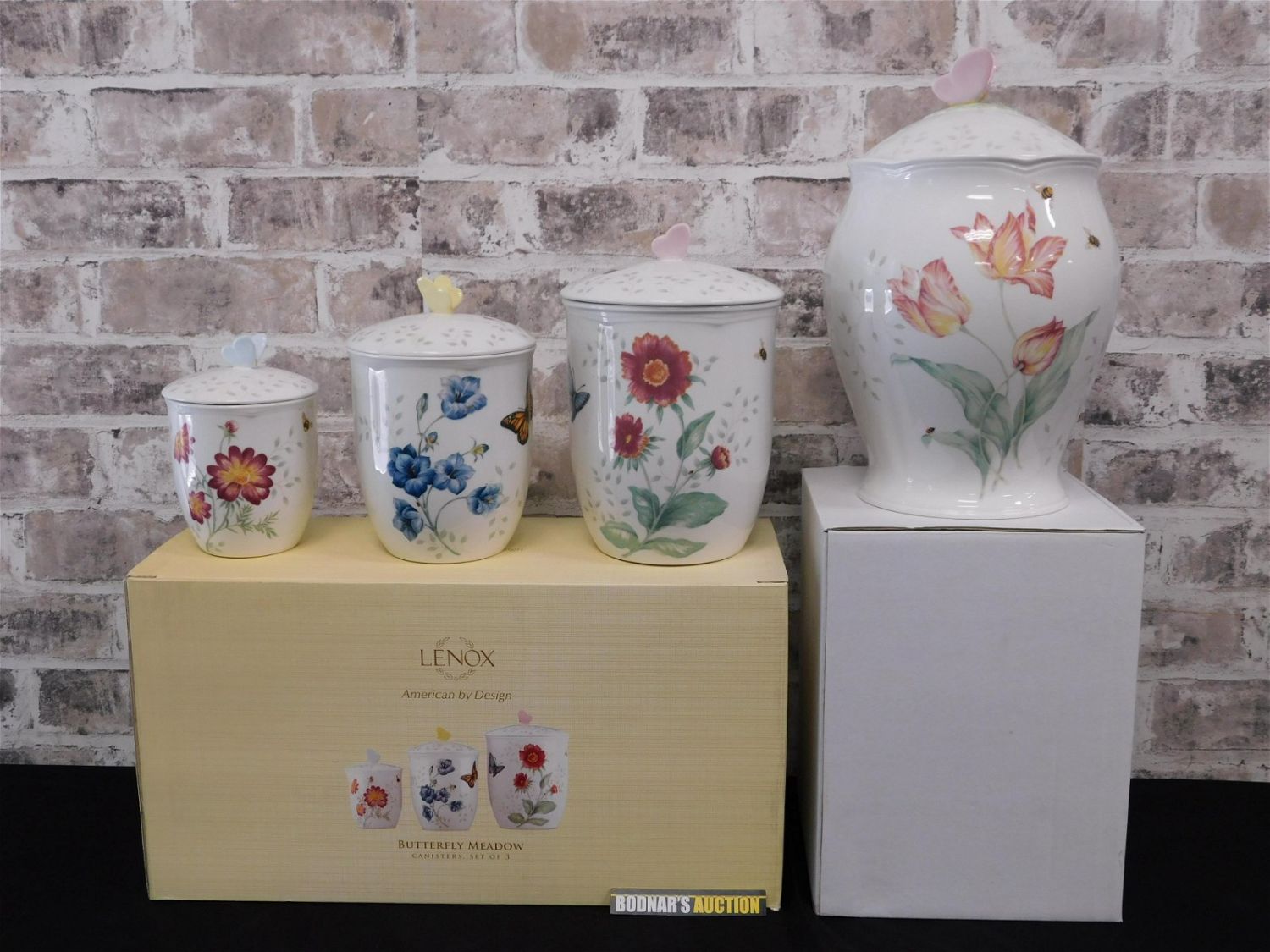 Group Lot of Lenox Butterfly Meadow Canisters. Includes Large Canister measuring 12" tall x 8" wide and Canister Box Set of 3 measuring 6" – 9" tall. Comes in Original Boxes. Please read the terms and conditions. This sale will be broadcast live on sale day with full descriptions of each lot being sold. All items MUST be paid for within 24 HOURS of the sale. Anyone who has not paid within 24 hours will have a dispute opened against them and will not be able to bid at future sales. If you need your items shipped, we wwe are using Liveauctioneers Live Ship. They will pack it and ship it to you and it will be on your invoice at check out. They will pack it and ship it to you and you will pay them separately and directly. You can also use your own shiper. If you are picking your items up you must contact us NO LATER than 24 hours after the sale to schedule an appointment to pick up. Pick up dates are Thursday, Friday, Saturday, and Monday ONLY, and are BY APPOINTMENT ONLY!! After Monday, if you have not picked up your items, they will be disposed of.