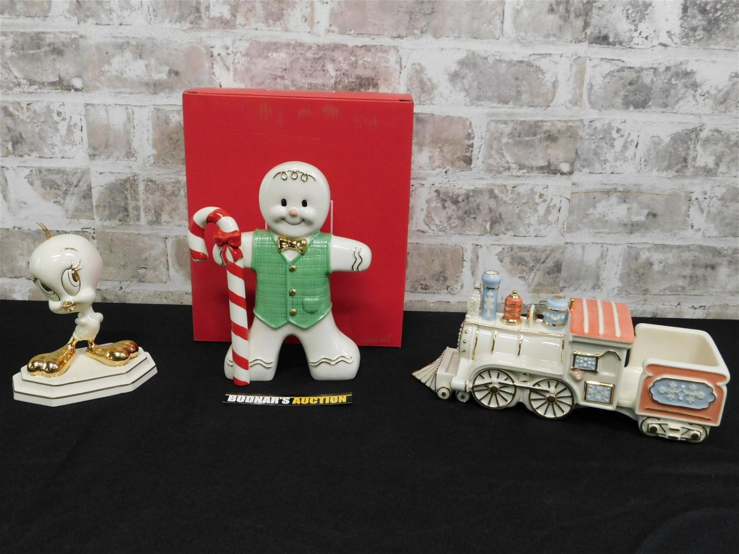 Group Lot of Lenox Figurines including Gingerbread Boy in Original Box, Tweety Figurine, and Lenox Train. Please read the terms and conditions. This sale will be broadcast live on sale day with full descriptions of each lot being sold. All items MUST be paid for within 24 HOURS of the sale. Anyone who has not paid within 24 hours will have a dispute opened against them and will not be able to bid at future sales. If you need your items shipped, we wwe are using Liveauctioneers Live Ship. They will pack it and ship it to you and it will be on your invoice at check out. They will pack it and ship it to you and you will pay them separately and directly. You can also use your own shiper. If you are picking your items up you must contact us NO LATER than 24 hours after the sale to schedule an appointment to pick up. Pick up dates are Thursday, Friday, Saturday, and Monday ONLY, and are BY APPOINTMENT ONLY!! After Monday, if you have not picked up your items, they will be disposed of.