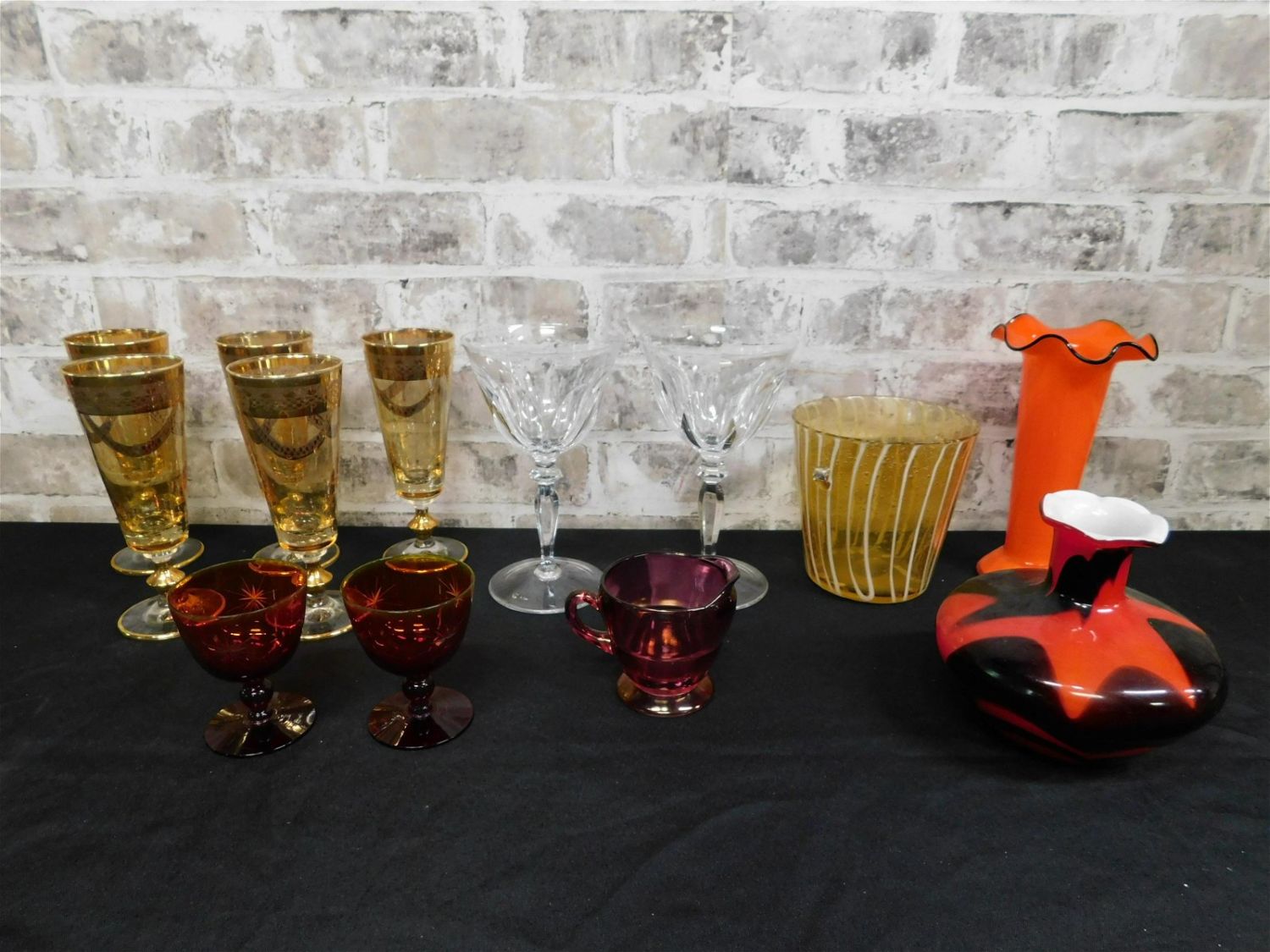 Lot of Mixed Glass including Crystal, Colored Glass, Etched Glass and Art Glass. Including Vases, Cordials, Stems and More. Please read the terms and conditions. This sale will be broadcast live on sale day with full descriptions of each lot being sold. All items MUST be paid for within 24 HOURS of the sale. Anyone who has not paid within 24 hours will have a dispute opened against them and will not be able to bid at future sales. If you need your items shipped, we wwe are using Liveauctioneers Live Ship. They will pack it and ship it to you and it will be on your invoice at check out. They will pack it and ship it to you and you will pay them separately and directly. You can also use your own shiper. If you are picking your items up you must contact us NO LATER than 24 hours after the sale to schedule an appointment to pick up. Pick up dates are Thursday, Friday, Saturday, and Monday ONLY, and are BY APPOINTMENT ONLY!! After Monday, if you have not picked up your items, they will be disposed of.