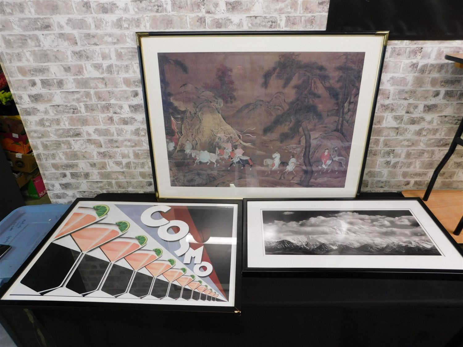 Lot of 3 Pieces of Framed Art including Cosmo Art Deco Poster measuring 28" tall x 38" wide, Framed Print of Mountains measuring 21" tall x 39" wide, and Print of Asian Fighting Scene measuring 35" tall x 46" wide. Please read the terms and conditions. This sale will be broadcast live on sale day with full descriptions of each lot being sold. All items MUST be paid for within 24 HOURS of the sale. Anyone who has not paid within 24 hours will have a dispute opened against them and will not be able to bid at future sales. If you need your items shipped, we wwe are using Liveauctioneers Live Ship. They will pack it and ship it to you and it will be on your invoice at check out. They will pack it and ship it to you and you will pay them separately and directly. You can also use your own shiper. If you are picking your items up you must contact us NO LATER than 24 hours after the sale to schedule an appointment to pick up. Pick up dates are Thursday, Friday, Saturday, and Monday ONLY, and are BY APPOINTMENT ONLY!! After Monday, if you have not picked up your items, they will be disposed of.