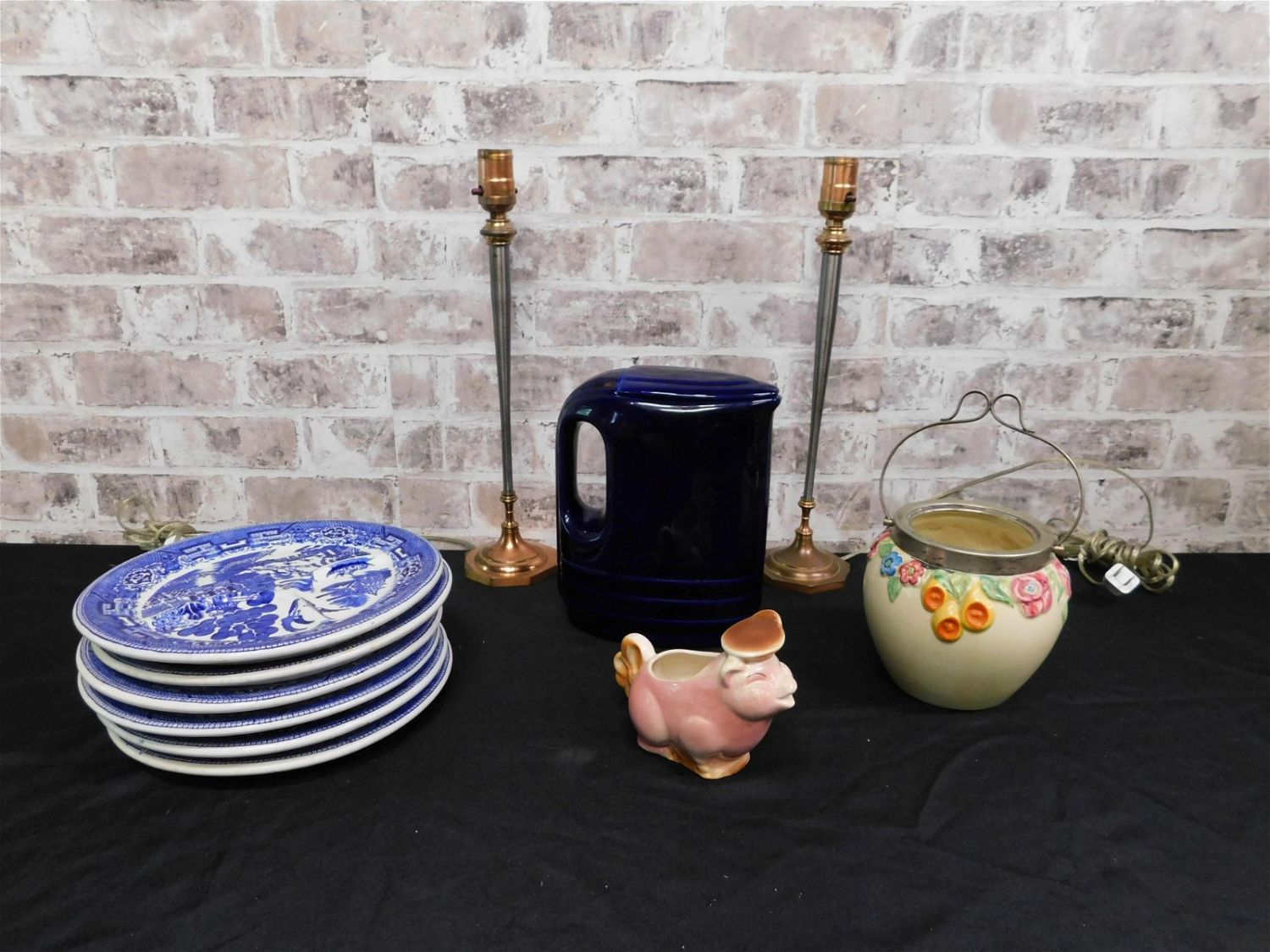 Mixed Lot of Collectibles including Willow Blue and White Divided Dishes, Hall Pottery Pitcher, Lamps, and More. Please read the terms and conditions. This sale will be broadcast live on sale day with full descriptions of each lot being sold. All items MUST be paid for within 24 HOURS of the sale. Anyone who has not paid within 24 hours will have a dispute opened against them and will not be able to bid at future sales. If you need your items shipped, we wwe are using Liveauctioneers Live Ship. They will pack it and ship it to you and it will be on your invoice at check out. They will pack it and ship it to you and you will pay them separately and directly. You can also use your own shiper. If you are picking your items up you must contact us NO LATER than 24 hours after the sale to schedule an appointment to pick up. Pick up dates are Thursday, Friday, Saturday, and Monday ONLY, and are BY APPOINTMENT ONLY!! After Monday, if you have not picked up your items, they will be disposed of.