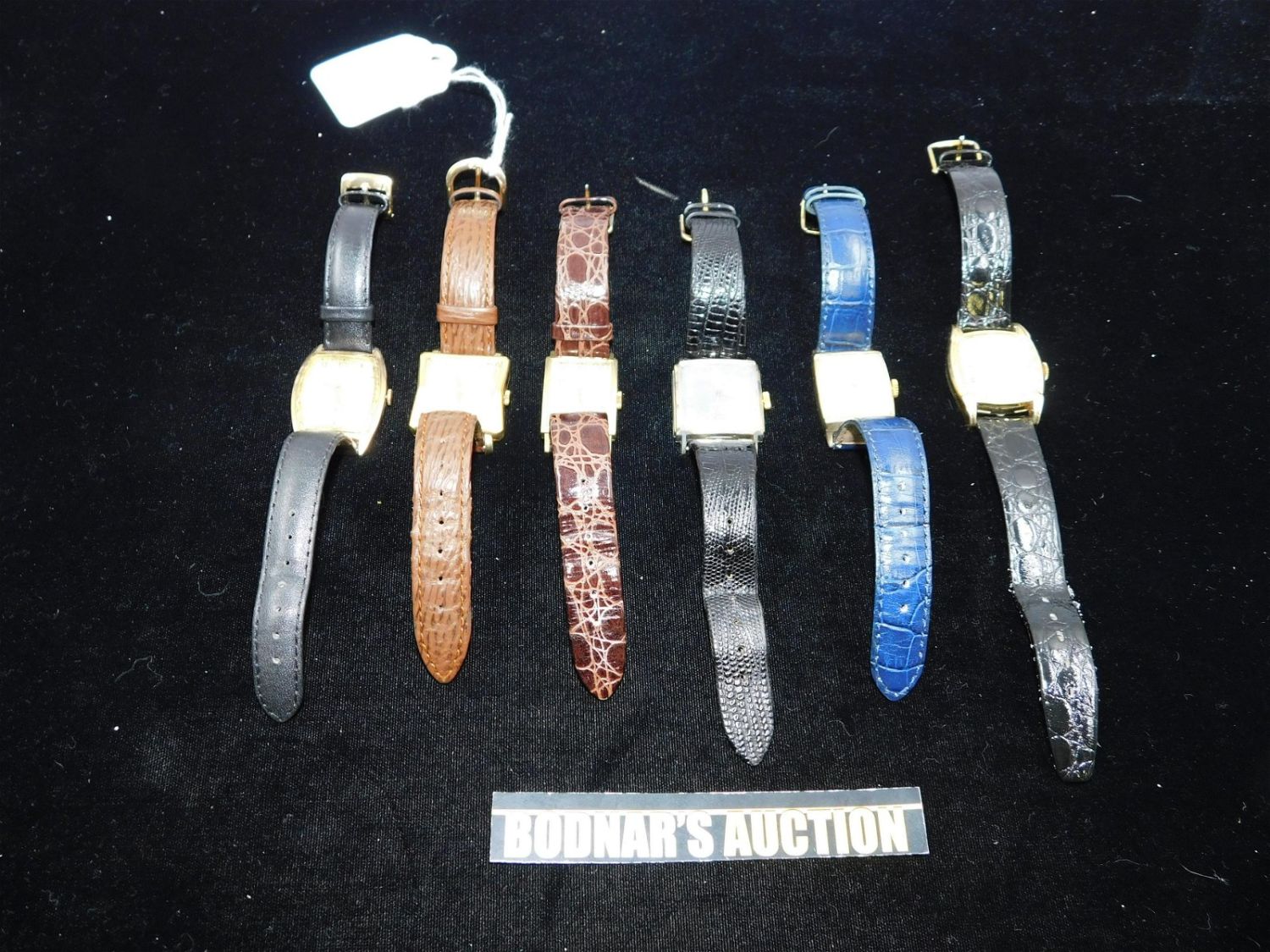 Lot of 10K gold filled watches including Clinton Automatic (in working condition), Elgin De Luxe (not in working condition), Whittnauer Revue (in working condition), Helbros (in working condition), Elgin De Luxe (not in working condition) and Bulova (in working condition). All have some scratches to the crystal, and discoloration to the face. All have leather bands. Measures approx. 8 1/2" – 9". All invoices must be paid within 24 hours of the sale. All items are shipped USPS or UPS and will be billed separately. A $12 handling fee is added to the shipping price per lot if shipped in house. Some items or large quantity of purchases will be packed and shipped via the UPS store. Local pickups are at our South Brunswick location on Friday, Saturday and Monday ONLY! All pickups are by appointment only. Any condition issues will be listed in the description. Please read the terms for full information.