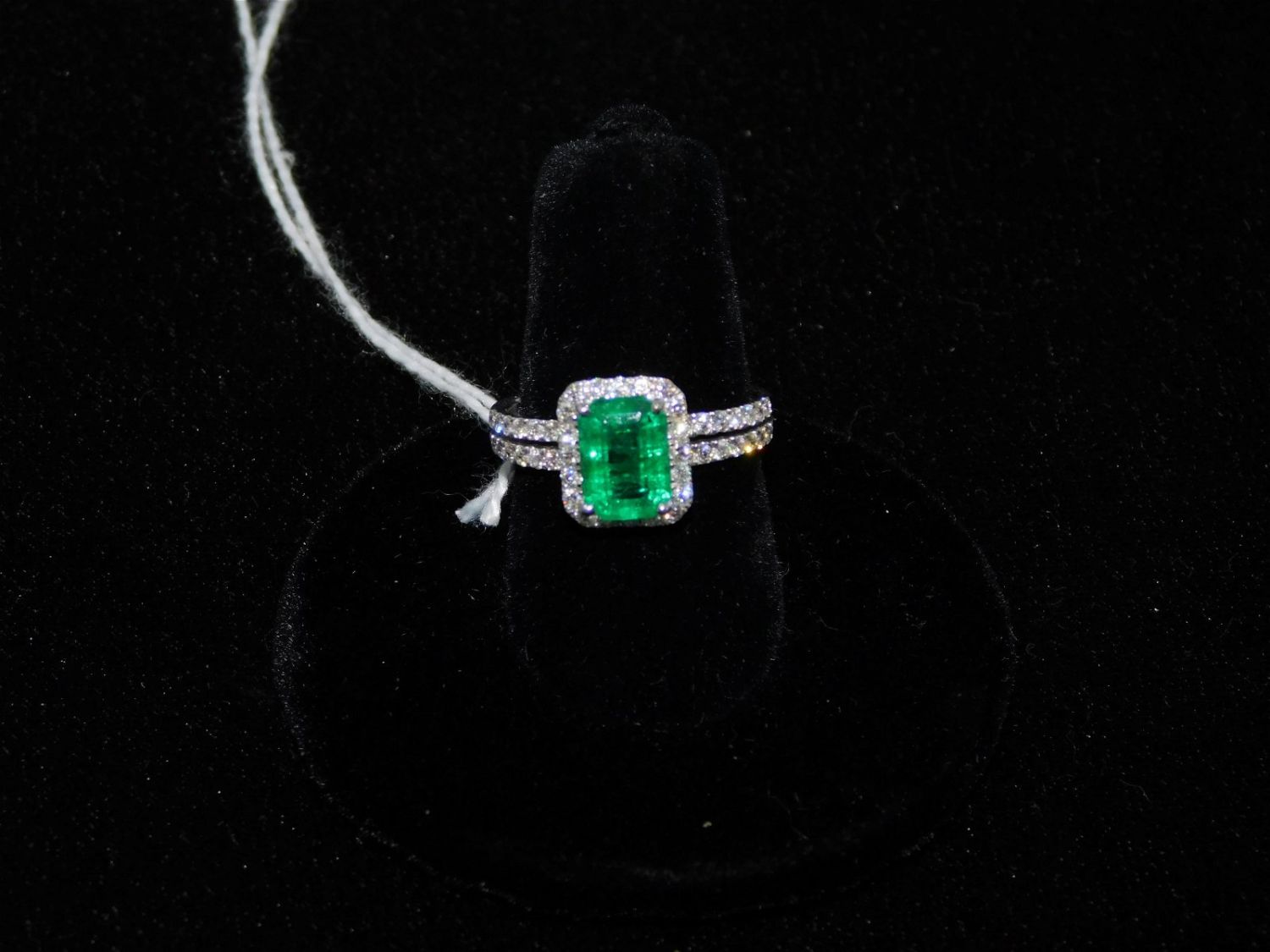 18K White Gold Ladies Custom Made Diamond and Emerald Ring. Center Stone is Natural Emerald approx. 1.90 ct Emerald Cut with Natural Round Brilliant Cut Diamonds weighing approx. 2.47 ct. Comes with IAS Appraisal. Size 6 3/4. All invoices must be paid within 24 hours of the sale. All items are shipped USPS or UPS and will be billed separately. A $12 handling fee is added to the shipping price per lot if shipped in house. Some items or large quantity of purchases will be packed and shipped via the UPS store. Local pickups are at our South Brunswick location on Friday, Saturday and Monday ONLY! All pickups are by appointment only. Any condition issues will be listed in the description. Please read the terms for full information.