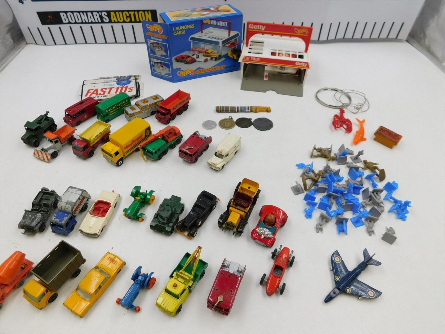 Mixed Lot of Toys and Diecast including Hot Wheels and Matchbox Cars, Hot Wheels Mini Market, Plastic Army Men, and Please read the terms and conditions. This sale will be broadcast live on sale day with full descriptions of each lot being sold. All items MUST be paid for within 24 HOURS of the sale. Anyone who has not paid within 24 hours will have a dispute opened against them and will not be able to bid at future sales. If you need your items shipped, we are using Liveauctioneers Live Ship. They will pack it and ship it to you and it will be on your invoice at check out.. If you are picking your items up you must contact us NO LATER than 24 hours after the sale to schedule an appointment to pick up. Pick up dates are Thursday, Friday, Saturday, and Monday ONLY, and are BY APPOINTMENT ONLY!! After Monday, if you have not picked up your items, they will be disposed of.