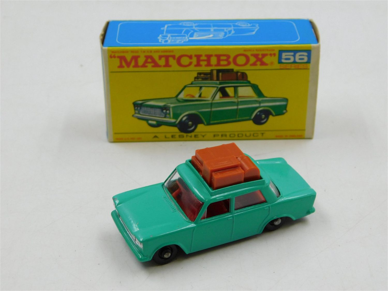 Matchbox Lesney Fiat 1500 #56. Comes in Original Box. Please read the terms and conditions. This sale will be broadcast live on sale day with full descriptions of each lot being sold. All items MUST be paid for within 24 HOURS of the sale. Anyone who has not paid within 24 hours will have a dispute opened against them and will not be able to bid at future sales. If you need your items shipped, we are using Liveauctioneers Live Ship. They will pack it and ship it to you and it will be on your invoice at check out.. If you are picking your items up you must contact us NO LATER than 24 hours after the sale to schedule an appointment to pick up. Pick up dates are Thursday, Friday, Saturday, and Monday ONLY, and are BY APPOINTMENT ONLY!! After Monday, if you have not picked up your items, they will be disposed of.