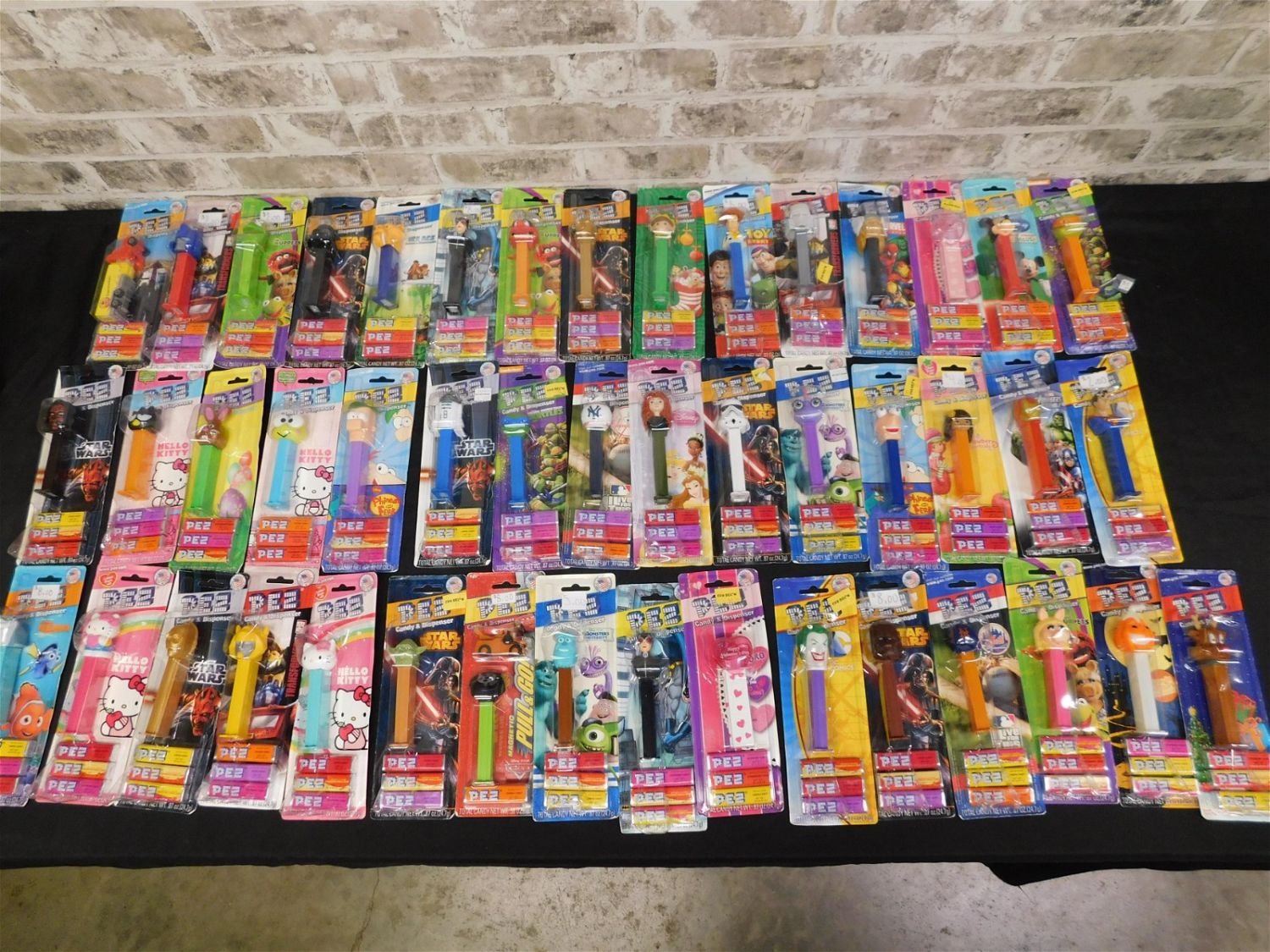 Lot of 46 Pez. All Sealed on Card. Including Hello Kitty, Star Wars, Halloween, New York Yankees, Transformers, Toy Story, Batman and More. Please read the terms and conditions. This sale will be broadcast live on sale day with full descriptions of each lot being sold. All items MUST be paid for within 24 HOURS of the sale. Anyone who has not paid within 24 hours will have a dispute opened against them and will not be able to bid at future sales. If you need your items shipped, we are using Liveauctioneers Live Ship. They will pack it and ship it to you and it will be on your invoice at check out.. If you are picking your items up you must contact us NO LATER than 24 hours after the sale to schedule an appointment to pick up. Pick up dates are Thursday, Friday, Saturday, and Monday ONLY, and are BY APPOINTMENT ONLY!! After Monday, if you have not picked up your items, they will be disposed of.