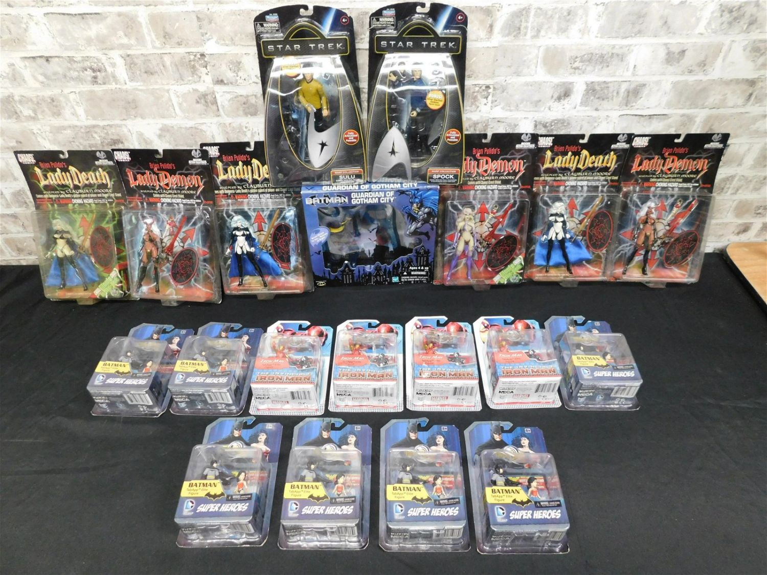 Mixed Lot of Toys including Tap App Elite Figures from Marvel and DC, Batman Guardian of Gotham City, Star Trak Figures, and Lady Demon Action Figures. Please read the terms and conditions. This sale will be broadcast live on sale day with full descriptions of each lot being sold. All items MUST be paid for within 24 HOURS of the sale. Anyone who has not paid within 24 hours will have a dispute opened against them and will not be able to bid at future sales. If you need your items shipped, we are using Liveauctioneers Live Ship. They will pack it and ship it to you and it will be on your invoice at check out.. If you are picking your items up you must contact us NO LATER than 24 hours after the sale to schedule an appointment to pick up. Pick up dates are Thursday, Friday, Saturday, and Monday ONLY, and are BY APPOINTMENT ONLY!! After Monday, if you have not picked up your items, they will be disposed of.