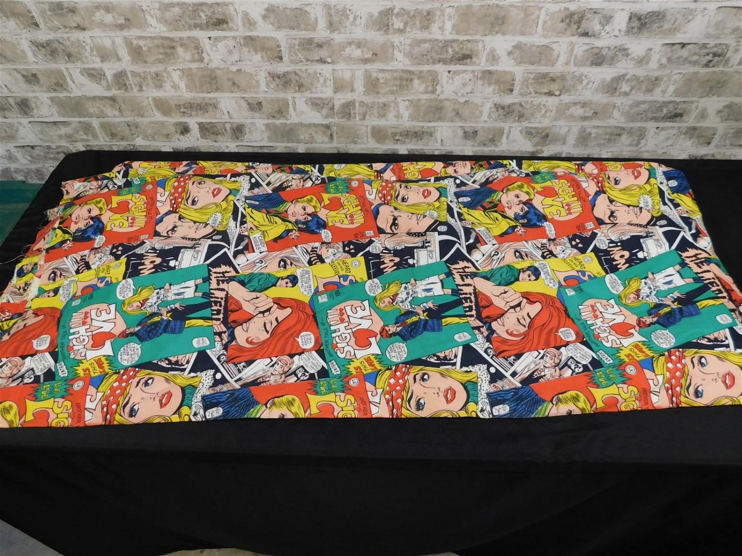 Comic Art Fabric. Measures 212" long x 42" wide. Please read the terms and conditions. This sale will be broadcast live on sale day with full descriptions of each lot being sold. All items MUST be paid for within 24 HOURS of the sale. Anyone who has not paid within 24 hours will have a dispute opened against them and will not be able to bid at future sales. If you need your items shipped, we are using Liveauctioneers Live Ship. They will pack it and ship it to you and it will be on your invoice at check out.. If you are picking your items up you must contact us NO LATER than 24 hours after the sale to schedule an appointment to pick up. Pick up dates are Thursday, Friday, Saturday, and Monday ONLY, and are BY APPOINTMENT ONLY!! After Monday, if you have not picked up your items, they will be disposed of.