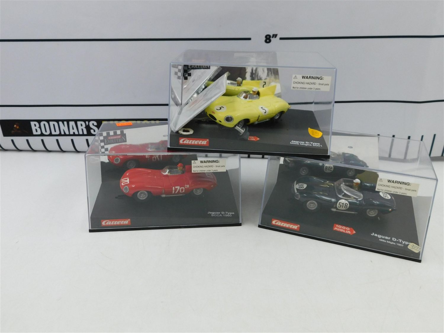 Lot of 3 Carrera Slot Cars 1:32 Scale. Includes Jaguar D-Type SCCA 1960, Jaguar D-Type Mille Miglia 1957, and Jaguar D-Type Mille Miglia 2001. All slot cars are in new or carefully displayed condition. Please read the terms and conditions. This sale will be broadcast live on sale day with full descriptions of each lot being sold. All items MUST be paid for within 24 HOURS of the sale. Anyone who has not paid within 24 hours will have a dispute opened against them and will not be able to bid at future sales. If you need your items shipped, we are using Liveauctioneers Live Ship. They will pack it and ship it to you and it will be on your invoice at check out.. If you are picking your items up you must contact us NO LATER than 24 hours after the sale to schedule an appointment to pick up. Pick up dates are Thursday, Friday, Saturday, and Monday ONLY, and are BY APPOINTMENT ONLY!! After Monday, if you have not picked up your items, they will be disposed of.