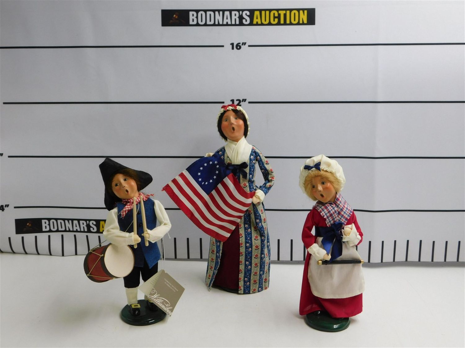 Lot of 3 Byers Choice Williamsburg Carolers. Includes Betsy Ross measuring 13" – Signed on Base, and Patriotic Family Girl and Boy measuring 10" tall. Please read the terms and conditions. This sale will be broadcast live on sale day with full descriptions of each lot being sold. All items MUST be paid for within 24 HOURS of the sale. Anyone who has not paid within 24 hours will have a dispute opened against them and will not be able to bid at future sales. If you need your items shipped, we are using Liveauctioneers Live Ship. They will pack it and ship it to you and it will be on your invoice at check out.. If you are picking your items up you must contact us NO LATER than 24 hours after the sale to schedule an appointment to pick up. Pick up dates are Thursday, Friday, Saturday, and Monday ONLY, and are BY APPOINTMENT ONLY!! After Monday, if you have not picked up your items, they will be disposed of.