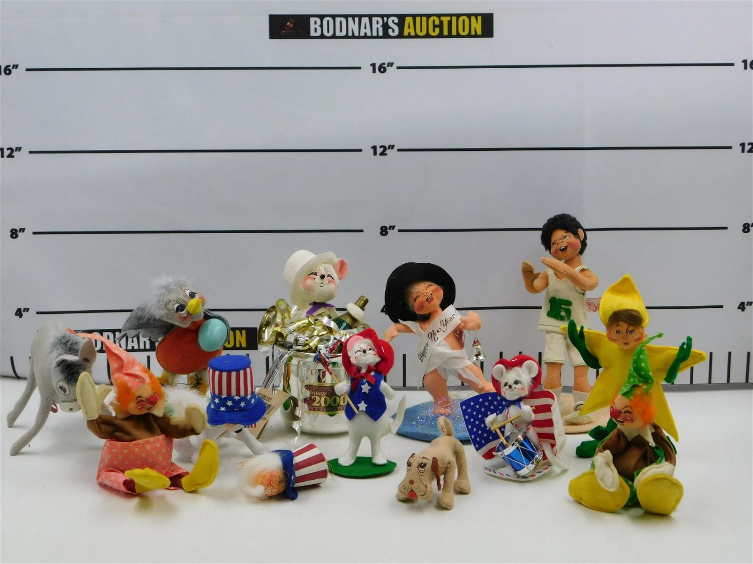 Mixed Lot of 13 Annalee Dolls including New Years, Basketball, Animals, Patriotic, and More. Measures 3"-10" tall. Please read the terms and conditions. This sale will be broadcast live on sale day with full descriptions of each lot being sold. All items MUST be paid for within 24 HOURS of the sale. Anyone who has not paid within 24 hours will have a dispute opened against them and will not be able to bid at future sales. If you need your items shipped, we are using Liveauctioneers Live Ship. They will pack it and ship it to you and it will be on your invoice at check out.. If you are picking your items up you must contact us NO LATER than 24 hours after the sale to schedule an appointment to pick up. Pick up dates are Thursday, Friday, Saturday, and Monday ONLY, and are BY APPOINTMENT ONLY!! After Monday, if you have not picked up your items, they will be disposed of.