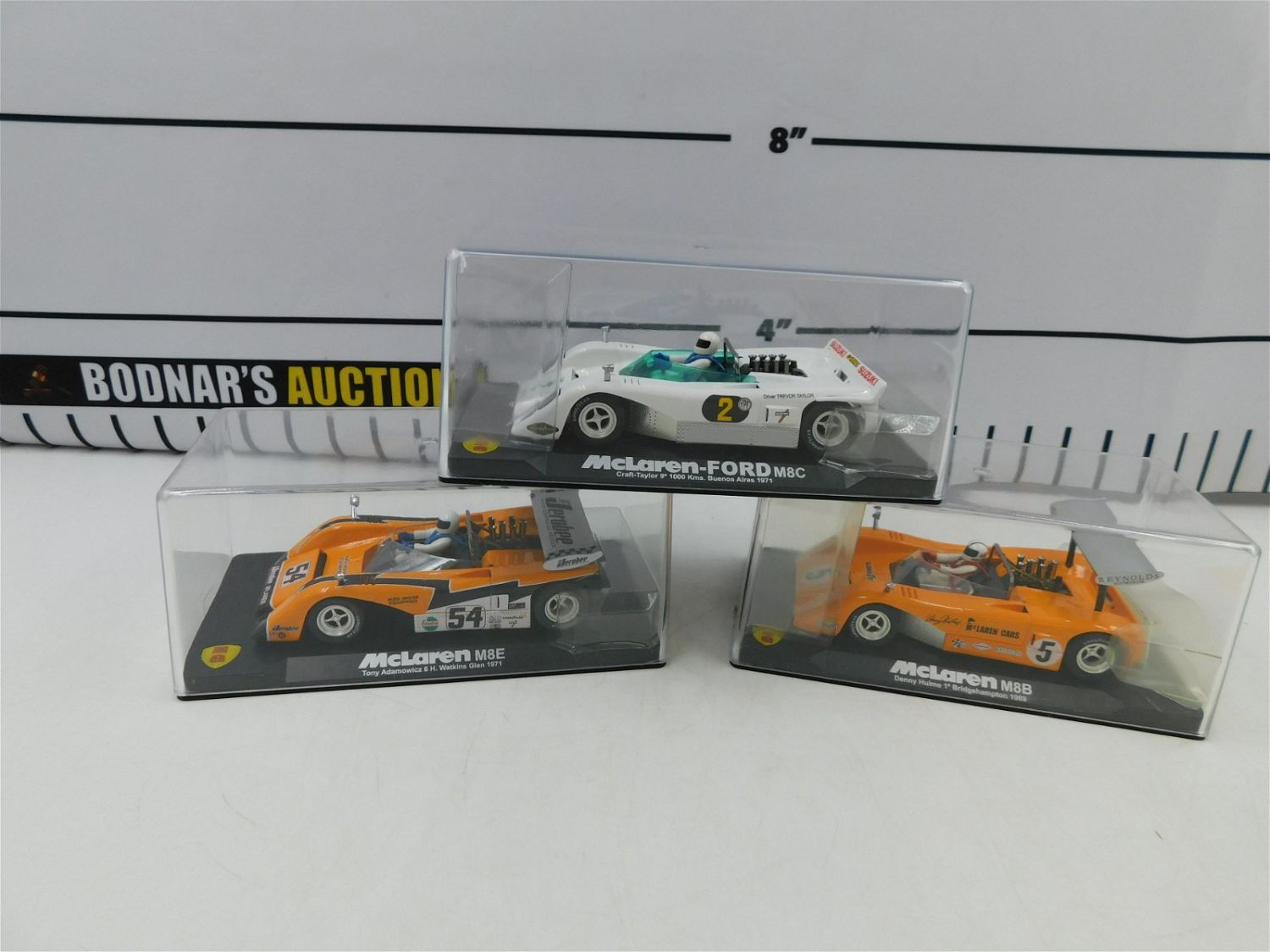 Lot of 3 Vanquish Slot Cars 1:32 Scale. Includes McLaren M8E Tony Adamowicz 6 H. Watkins Glen 1971, McLaren M8B Denny Hulme 1 Bridgehampton 1969, and McLaren Ford M8C Craft Taylor 9 1000 Kms. Buenos Aires 1971. All slot cars are in new or carefully displayed condition. Please read the terms and conditions. This sale will be broadcast live on sale day with full descriptions of each lot being sold. All items MUST be paid for within 24 HOURS of the sale. Anyone who has not paid within 24 hours will have a dispute opened against them and will not be able to bid at future sales. If you need your items shipped, we are using Liveauctioneers Live Ship. They will pack it and ship it to you and it will be on your invoice at check out.. If you are picking your items up you must contact us NO LATER than 24 hours after the sale to schedule an appointment to pick up. Pick up dates are Thursday, Friday, Saturday, and Monday ONLY, and are BY APPOINTMENT ONLY!! After Monday, if you have not picked up your items, they will be disposed of.