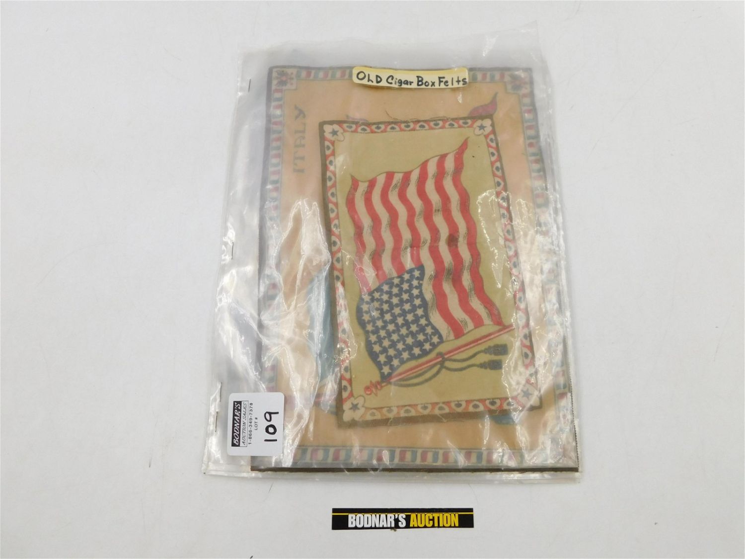 Lot of old cigar box felts. All different flags of various countries including US, Italy, Netherlands, Great Britain, Greece as well as what looks like a Native American blanket. All in good condition. All invoices must be paid within 24 hours of the sale. All items are shipped USPS or UPS and will be billed separately. A $12 handling fee is added to the shipping price per lot if shipped in house. Some items or large quantity of purchases will be packed and shipped via the UPS store. Local pickups are at our South Brunswick location on Friday, Saturday and Monday ONLY! All pickups are by appointment only. Any condition issues will be listed in the description. Please read the terms for full information.