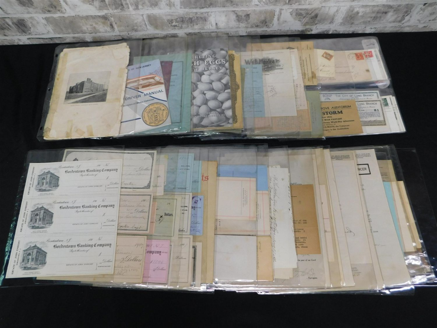 Group of early NJ related ephemera. Includes Bordentown Banking checks, The First National Bank checks, Surrogate’s Office papers, Almanac’s, driver’s manuals and more. All items must be paid within 24 hours of the sale. All items are shipped USPS or UPS and will be billed separately. A $12 handling fee is added to the shipping price per lot if shipped in house. Some items or large quantity of purchases will be packed and shipped via the UPS store. Local pickups are at our South Brunswick location on Friday, Saturday and Monday ONLY! All pickups are by appointment only. Any condition issues will be listed in the description. Please read the terms for full information.