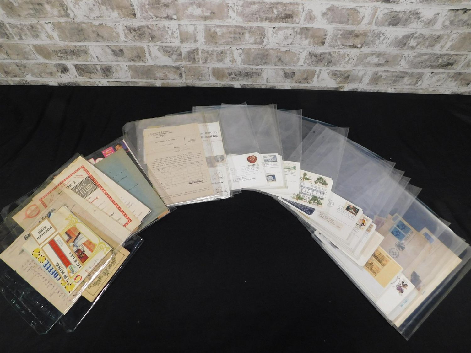 Group of early advertising including labels, early receipts, calendars, Erie Railroad Timetables, foreign currency, $2 bills and First Day Covers. All items must be paid within 24 hours of the sale. All items are shipped USPS or UPS and will be billed separately. A $12 handling fee is added to the shipping price per lot if shipped in house. Some items or large quantity of purchases will be packed and shipped via the UPS store. Local pickups are at our South Brunswick location on Friday, Saturday and Monday ONLY! All pickups are by appointment only. Any condition issues will be listed in the description. Please read the terms for full information.