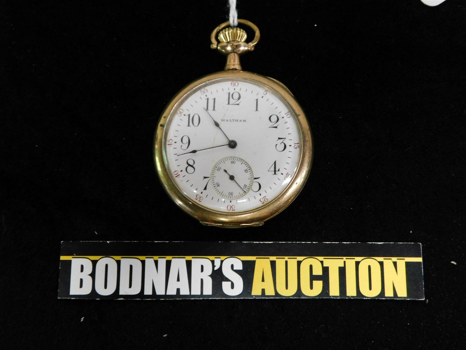 Waltham Pocket Watch with 10K Gold Filled J Boss Keystone Watch Hingeback Case. Case #8379330. Stem Winding – Running Condition. Seconds Bit at 6 o’clock. Stem at 12 o’clock. #18235665-17J. Measures 1.75" diameter. All items must be paid within 24 hours of the sale. All items are shipped USPS or UPS and will be billed separately. A $12 handling fee is added to the shipping price per lot if shipped in house. Some items or large quantity of purchases will be packed and shipped via the UPS store. Local pickups are at our South Brunswick location on Friday, Saturday and Monday ONLY! All pickups are by appointment only. Any condition issues will be listed in the description. Please read the terms for full information.